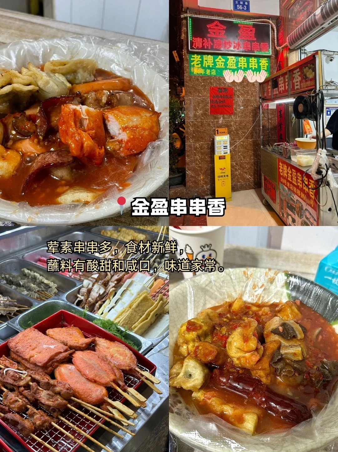 📍金盈串串香:荤素串串多,食材新鲜,蘸料有酸甜和咸口,味道家常。