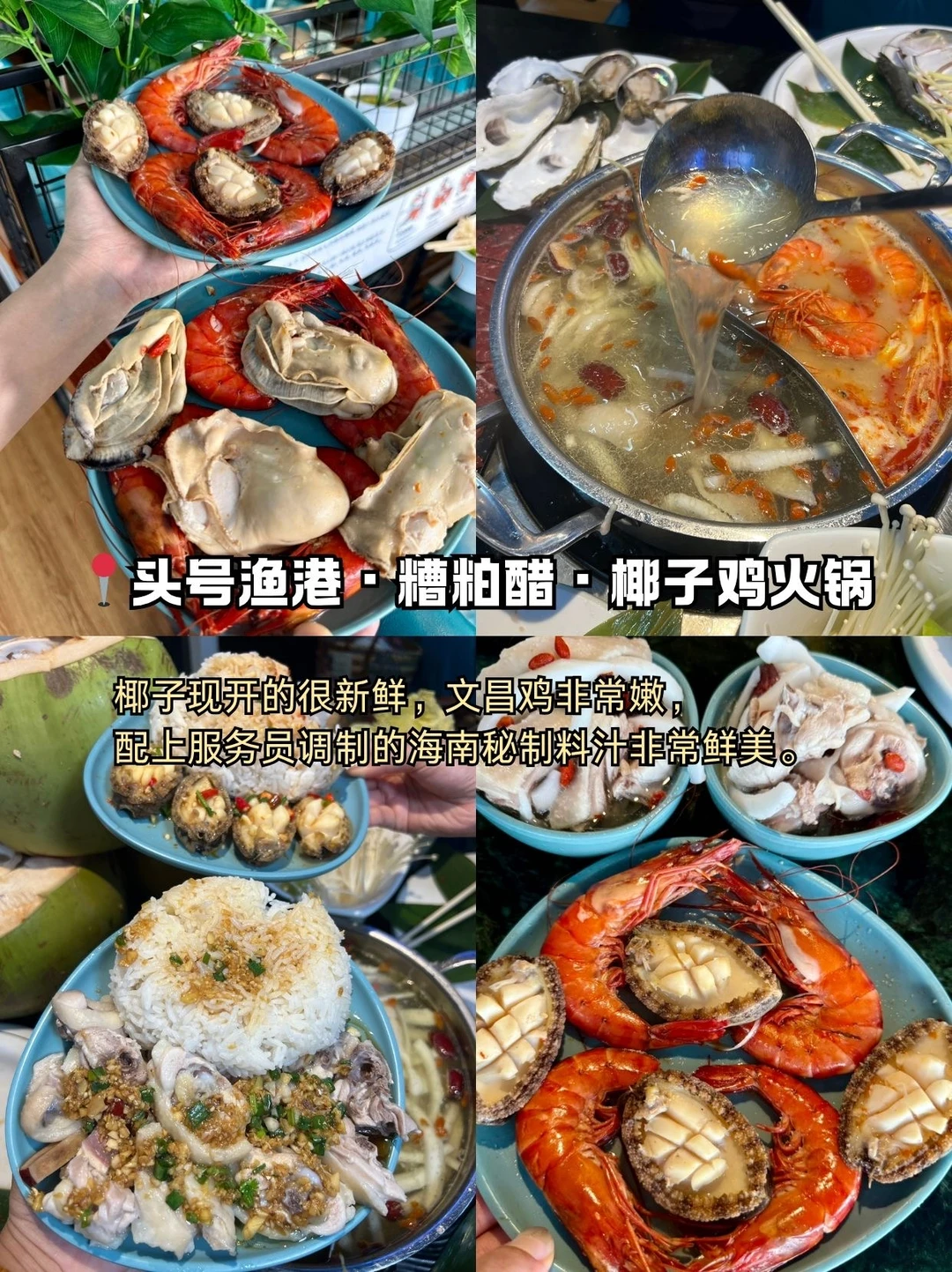 📍头号渔港・糟粕醋・椰子鸡火锅:椰子现开的很新鲜,文昌鸡非常嫩,配上服务员调制的海南秘制料汁非常鲜美。服务小姐姐很热心给我推荐美食,以及提醒椰子鸡的煮制时间,服务很好!