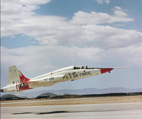 奇怪的飞机 诺斯罗普F-5战斗机和T-38教练机是一对儿孪生兄弟,有趣的是F-5后来又搞了教练型号F-5B,但二者还是有那么点特征区别,比如进气口形状。 最近发现一组照片很有趣,我有双座的F-5B,就有单座的T-38,美国空军专门订购了这批单座版本用来做武器开发测试,但使用起来效果不佳,很快返厂改回教练机,因此留下了稀有的照片 。