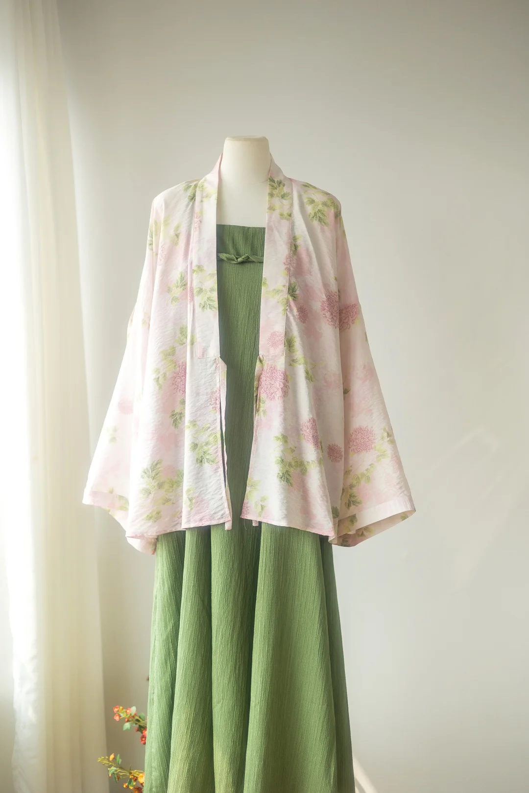 经典的对襟+宽袖设计,遮肉显瘦,溜肩、宽肩都能藏住