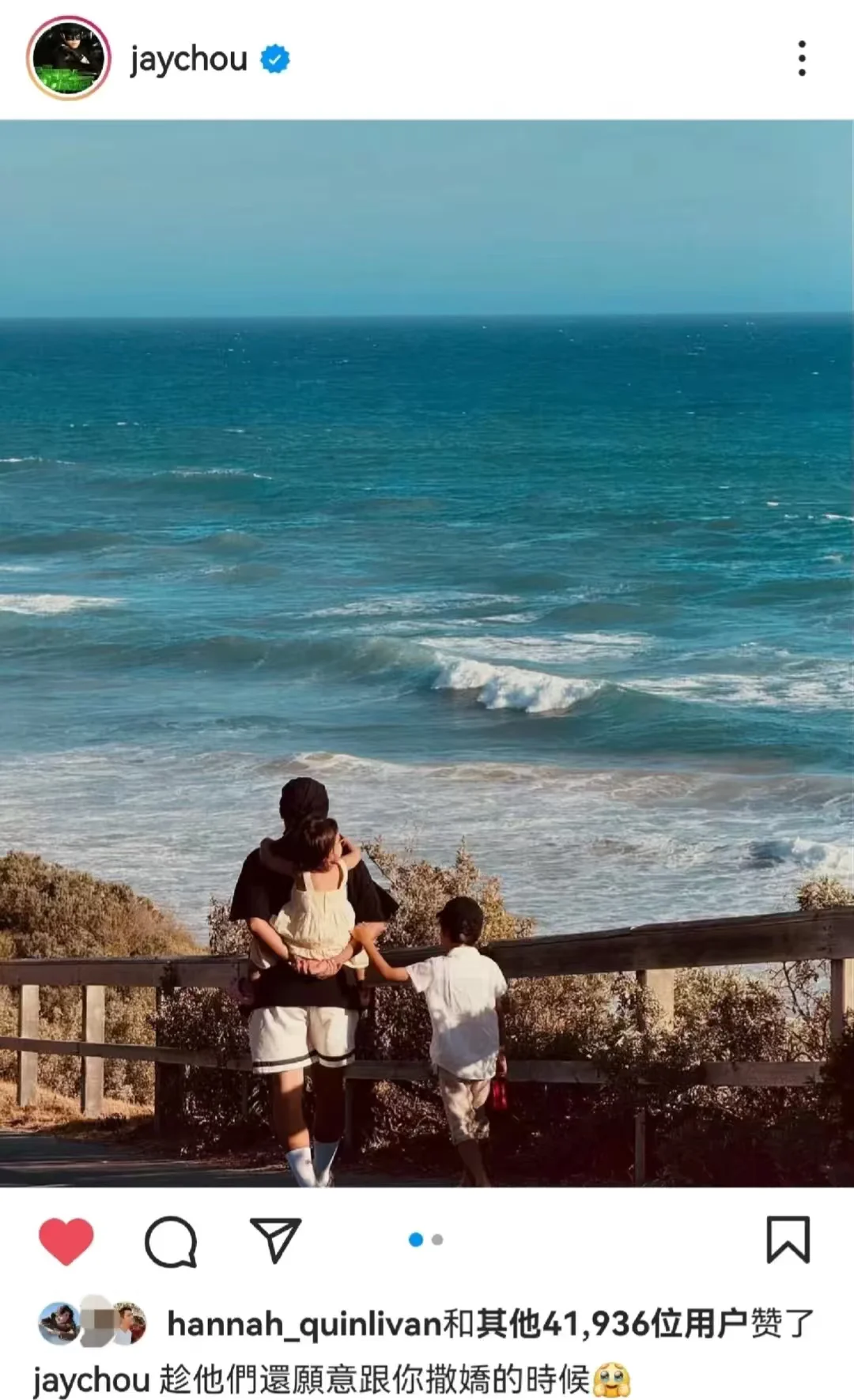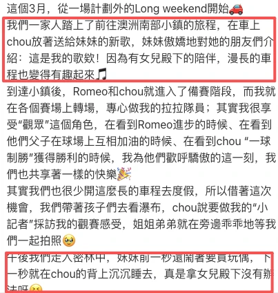 昆凌晒出一家人出游的照片,还配上了长文,原来快4岁的小女儿Jacinda已经开始跟朋友们炫耀自己有新歌了!周杰伦的《女儿殿下》正是写这个古灵精灵的小女儿的[色色R]
