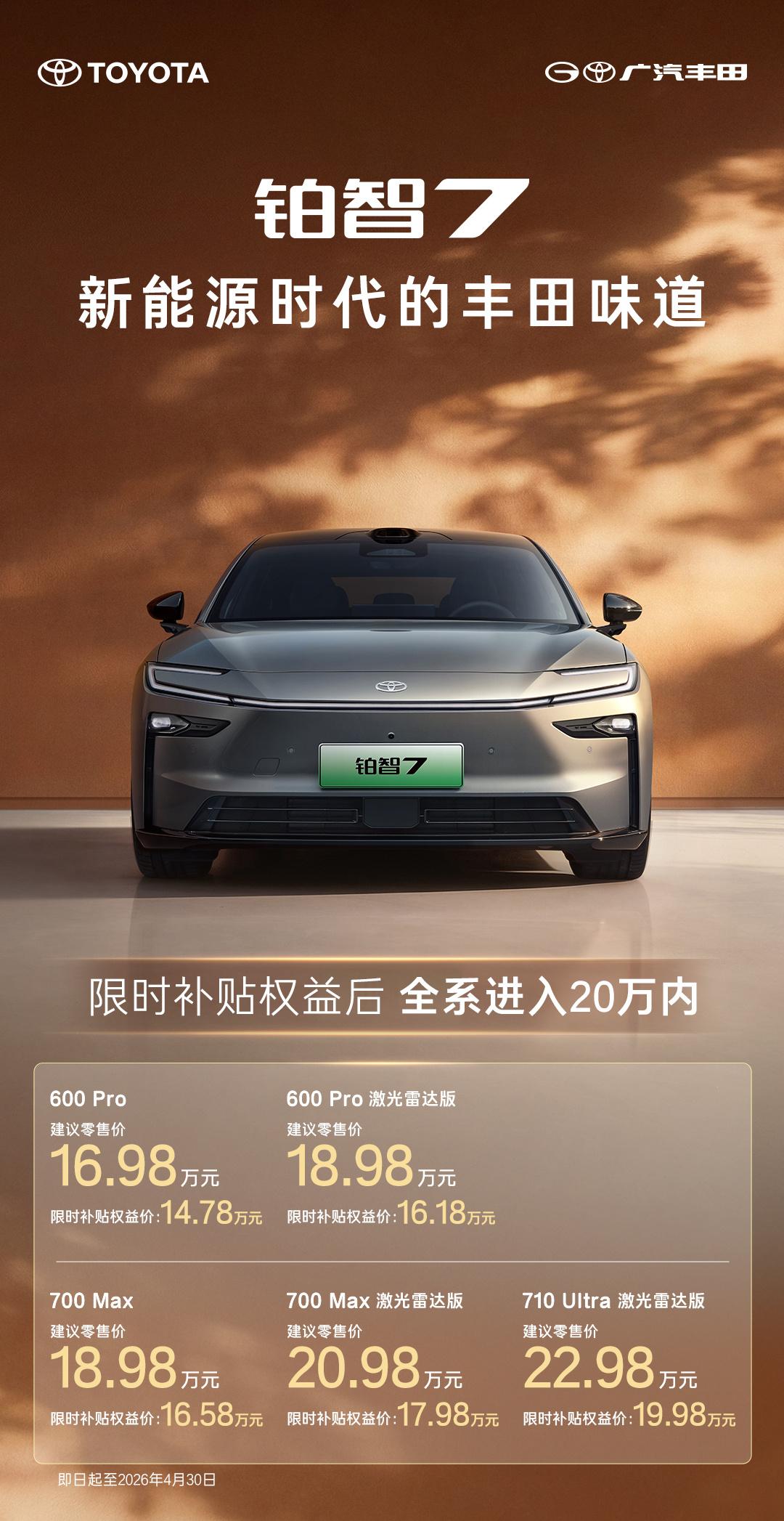 最近广汽丰田铂智 7 的全网首次光电实测结果出来了,看完数据我只能说,这台 15 万级的纯电轿车是真的实在!测试的是 710 Ultra 激光雷达版,官方 CLTC 续航 710 公里。这次测试完全模拟家庭日常出行,满载 3 个人,空调 24℃自动,还遇上 15-17℃的阴雨天,路线从杭州一路开到连云港,城市、国道、高速全涵盖,条件一点都不苛刻。最终成绩太亮眼:满电实测跑了 601 公里,综合续航达成率 86%。尤其是城市通勤,251 公里路程,电耗才 13.4kWh/100km,达成率 90%。高速也不差,350 公里路程,电耗 15.1kWh/100km,达成率 84%。它搭载 88.13kWh 磷酸铁锂电池,配华为 207kW 后置电机,快充 30%-80% 只要 0.4 小时。现在限时补贴价 14.78 万起,大定超 3100 台。日常通勤、周末跨省自驾都够用,续航靠谱、价格亲民,15 万级选它准没错。
