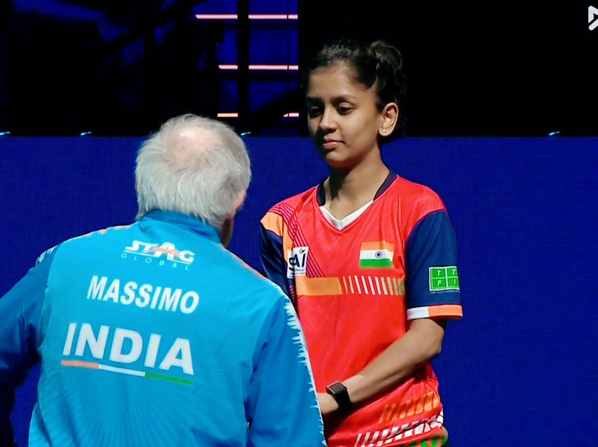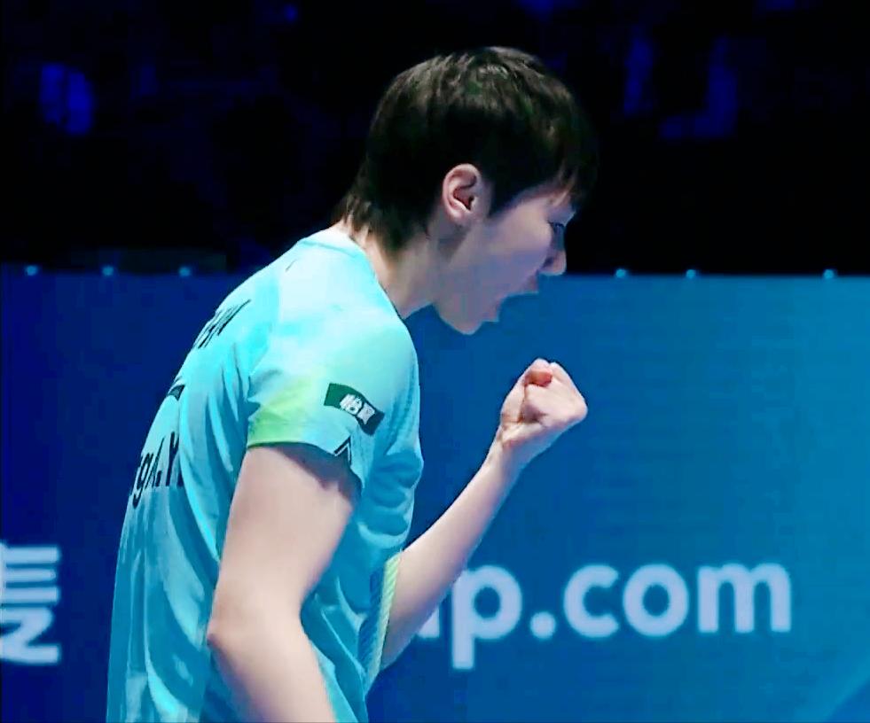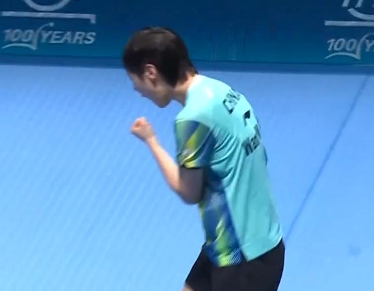 我去!鳗鱼不太会打颗粒选手吗? 今晚打阿库拉, 第一局开局 居然被压着打。 阿库拉打球也很简单, 磕一下, 立马侧身进攻, 进攻简单粗暴。 6:6平之后, 鳗鱼终于开始主动进攻了。 刘国正解释说: 刚开始不知道颗粒磕过来多转, 试过之后, 就有数了。 果然鳗鱼9:6领先, 11:8拿下。