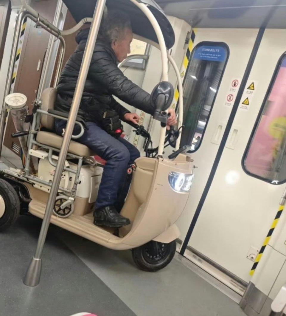 大爷把老头乐开进青岛地铁3号线,青岛地铁客服:正在核查。中国有自己的佛罗里达..