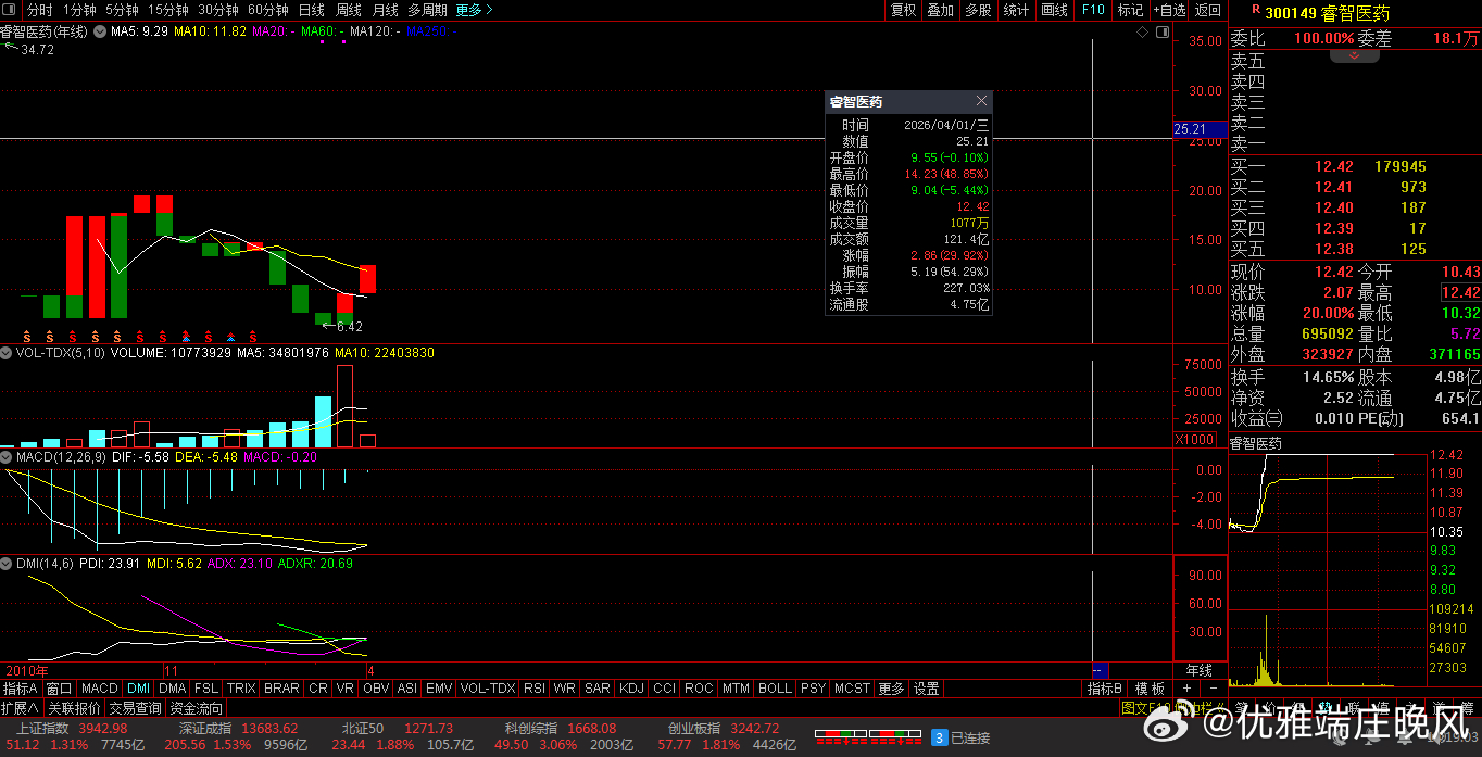 盘面透视:今日市场:整体普涨。其中凯莱英、两面针、星辉环材等个股连续涨停。并非是由:单一政策直接刺激。主要受到:创新药行业盈利兑现、算力储能高景气与股权转让预期等产业逻辑驱动,并非单一政策直接刺激。当前市场:走强板块:集中在创新药、光伏设备与特高压线缆。下面梳理核心驱动因素:
