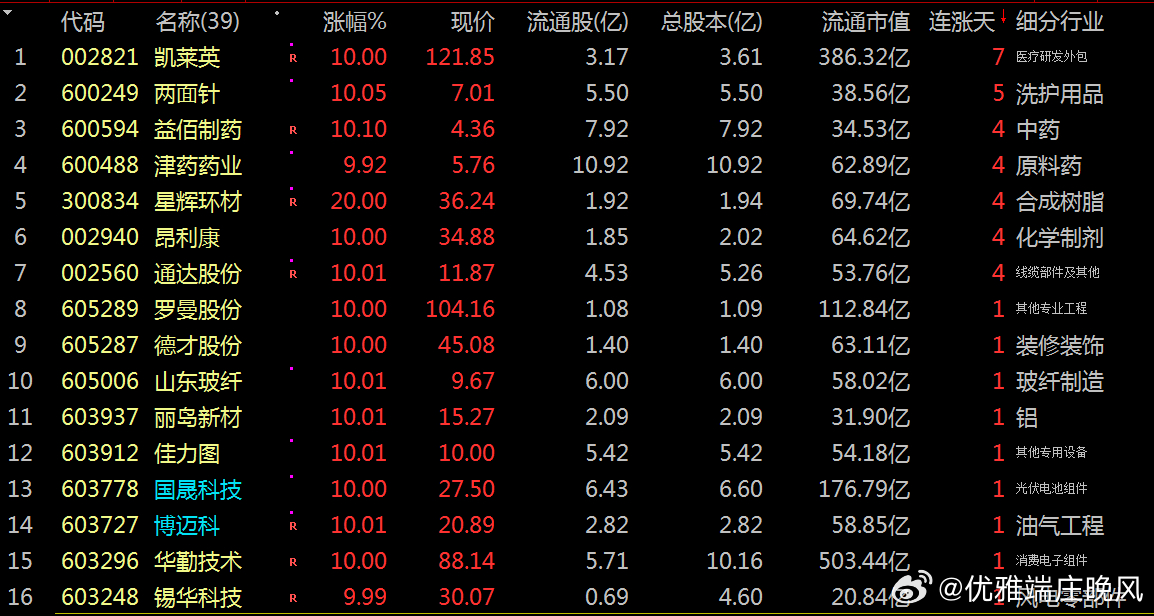 涨停龙头:惊艳今日:视野盘面:沪深北市:市场普涨 :其中凯莱英、两面针、星辉环材等个股连续涨停。并非是由:单一政策直接刺激。而是源于:公司基本面、产业趋势与市场情绪共同驱动。欲知推手:下面透视涨停板龙头股票: