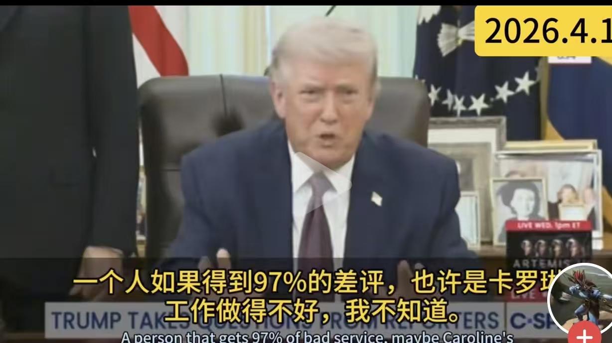 莱维特有点悬了? 俗话说,伴君如伴虎。 白宫有史以来最年轻的发言人莱维特可能面临被特朗普炒鱿鱼的风险。特朗普在 4 月 1 日愚人节当天公开说,自己在媒体报道中负面风评为 -93%,他把这个结果归因于莱维特代表白宫与媒体沟通方面存在失误和瑕疵。而特朗普坚决不承认这是自己造成的,把锅甩给了莱维特。 可怜的莱维特,尽管口齿伶俐,张弛有度,但还是成了特朗普手下的替罪羊🐑。