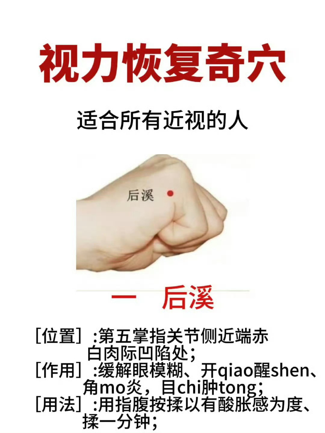 视力恢复奇位,快来试试吧!近视恢复奇位,适合近视,眼睛不舒服的宝宝。每天揉一揉还你清晰明亮的视界 国医的精诚力量