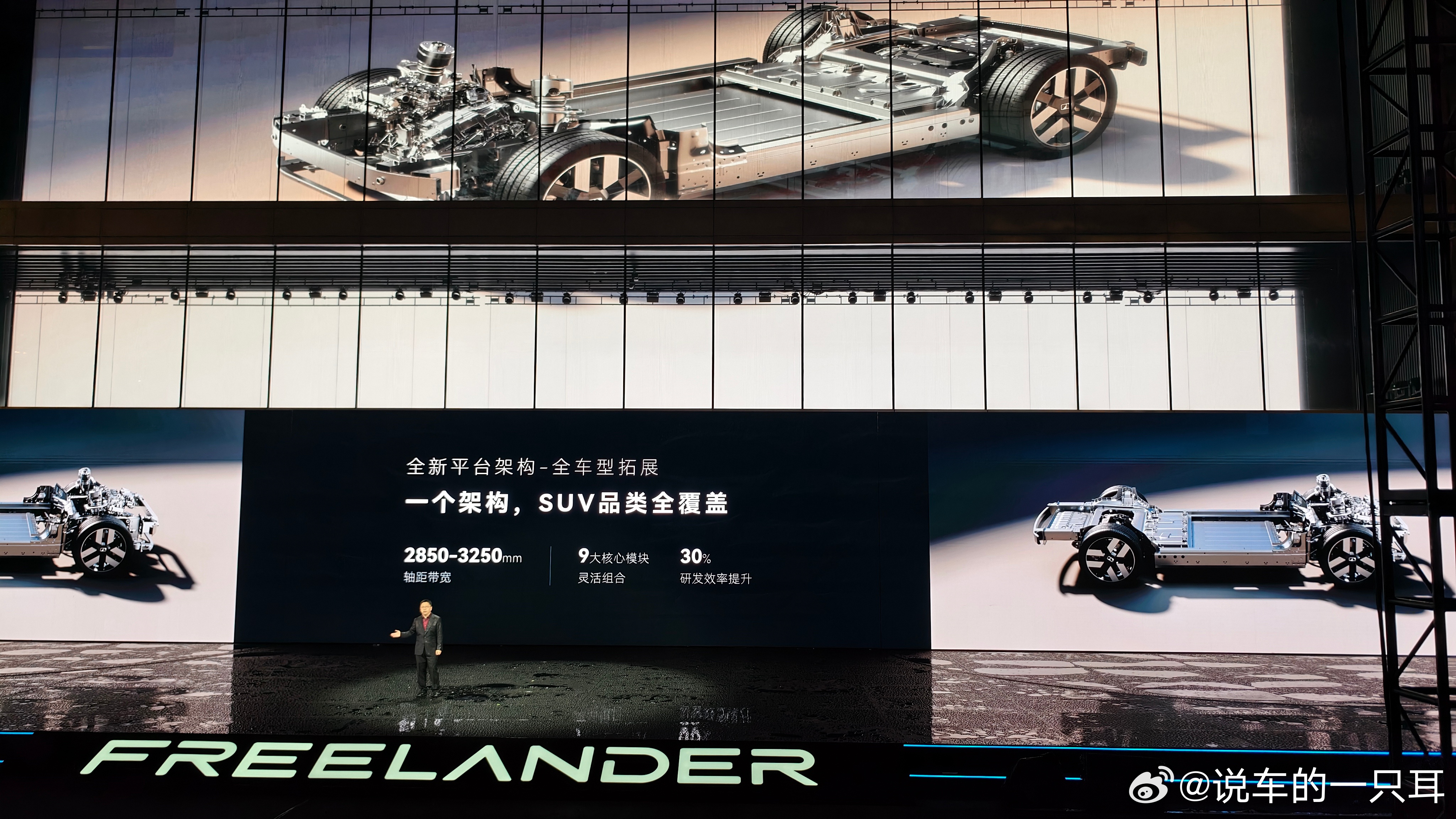仔细聊聊昨晚的FREELANDER发布会。FREELANDER 神行者品牌正式发布。没看错,神行者这次是品牌了。它是一个新的独立品牌,是奇瑞X捷豹路虎联手打造的新能源豪华品牌。这个品牌诞生于中国、立足中国(两个含义:主攻国内市场,同时使用的核心供应商都是来自中国)、辐射全球(利用捷豹路虎的海外关系直销国外)。两方职能:1、奇瑞:本土科技融合、供应商融合、制造等;2、捷豹路虎:设计融合、概念融合等。供应商:华为乾崑(比如直接上896线激光雷达)、宁德时代(直接上逍遥增混电池)、高通骁龙(直接上8397芯片)等。FREELANDER神行者品牌的计划,是在5年内推出6款产品。架构决定车型尺寸和级别。FREELANDER神行者至少目前仅用一款架构,轴距带宽是2850-3250mm,也就是从中型-中大型-大型。再加上,一整场发布会讲了“师承、豪华”,整个品牌的车型不会太便宜,我猜测首款将从35万左右开始。说到车呢,发布会上展示了FREELANDER神行者 Concept 97,97指的就是初代神行者问世时间。期待方面,i-ATS在激光雷达的辅助下,是不是能给到我们越野时的不同感受,特别是对于新能源车的扭矩控制等等。这款概念车是向大家展示后面的量产车型的设计方向,具体情况请看今晚节目。这车是真虎FREELANDER神行者全球首秀