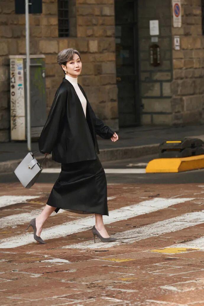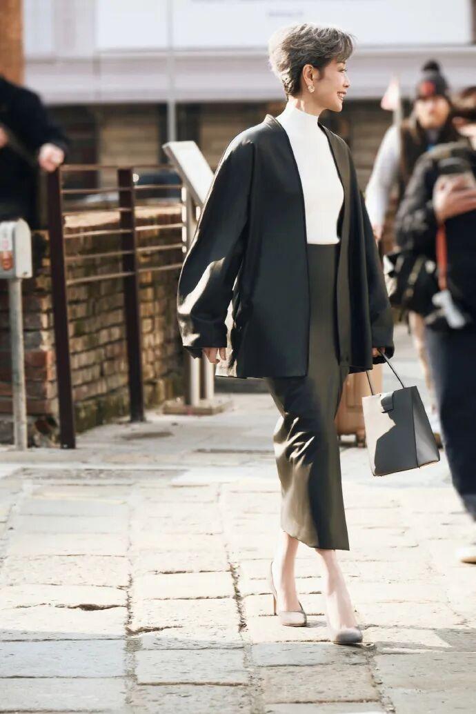 叶童 许仙都63岁了,一眼望去,谁敢信! 一头银发却神采奕奕,打扮时髦简约,身材苗条,体态轻盈,有皱纹也优雅,特别是这难以言喻的气质,感觉比赵雅芝美多了! 172cm身高,穿一袭黑白配极简廓形套裙,不仅衬得整个人清爽利落,还极具高级感,举手投足之间的状态简直帅炸了,又酷又飒,美得肆意大方! 经典的小羊皮质地,给人静谧大气的质感,配上修身高腰半裙,更是提升了整体时髦度,简直就是行走的衣架子嘛。 衣美,人更美......这哪像是年过花甲的老太太? 果然是美人在骨不在皮,生而美丽是优势,优雅到老才是本事!