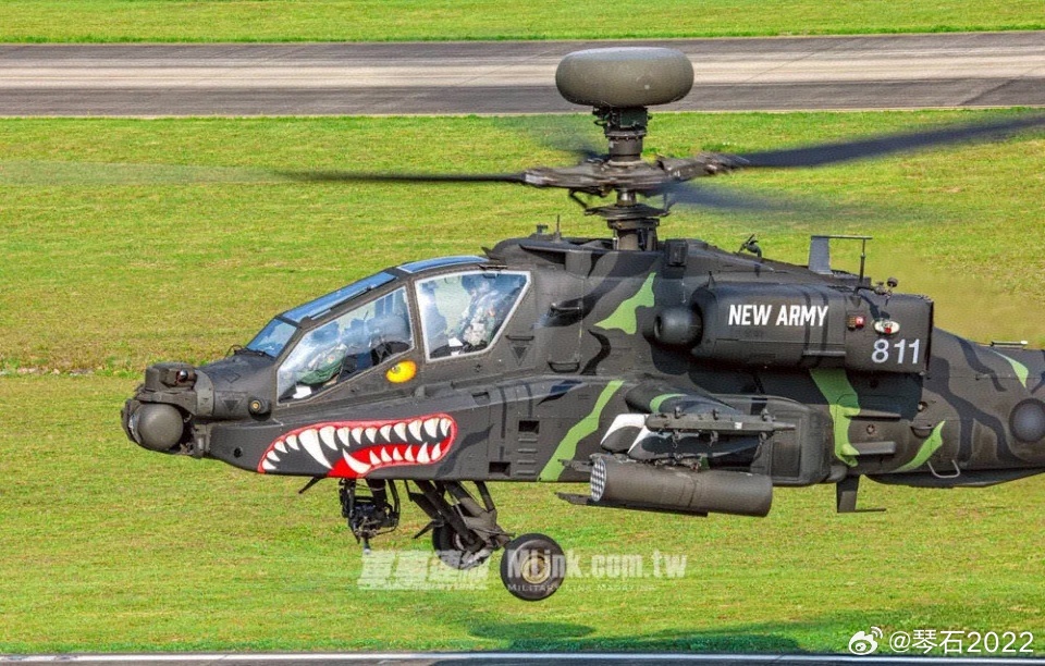 🐸的AH64E鲨鱼涂装台毒为庆祝陆军总部80年队,两架AH64E搞了新涂装,鲨鱼嘴一样,机身虎斑纹却不一样。战斗力不行,也只能学欧美搞这种花架子了…