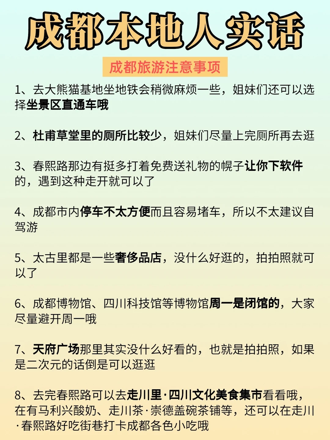 现在是成都的旅游淡季,人不会太多,真的给我玩爽吃爽了…尤其是做好攻略之后,玩的也会更加舒心哦❤️