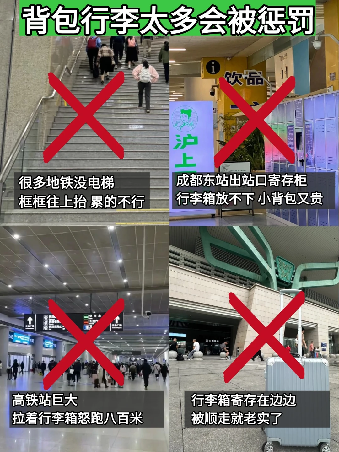 1⃣少带点行李🧳成都南巨大,千万不要卡点赶车,出站一定要找寄存或者直接去酒店