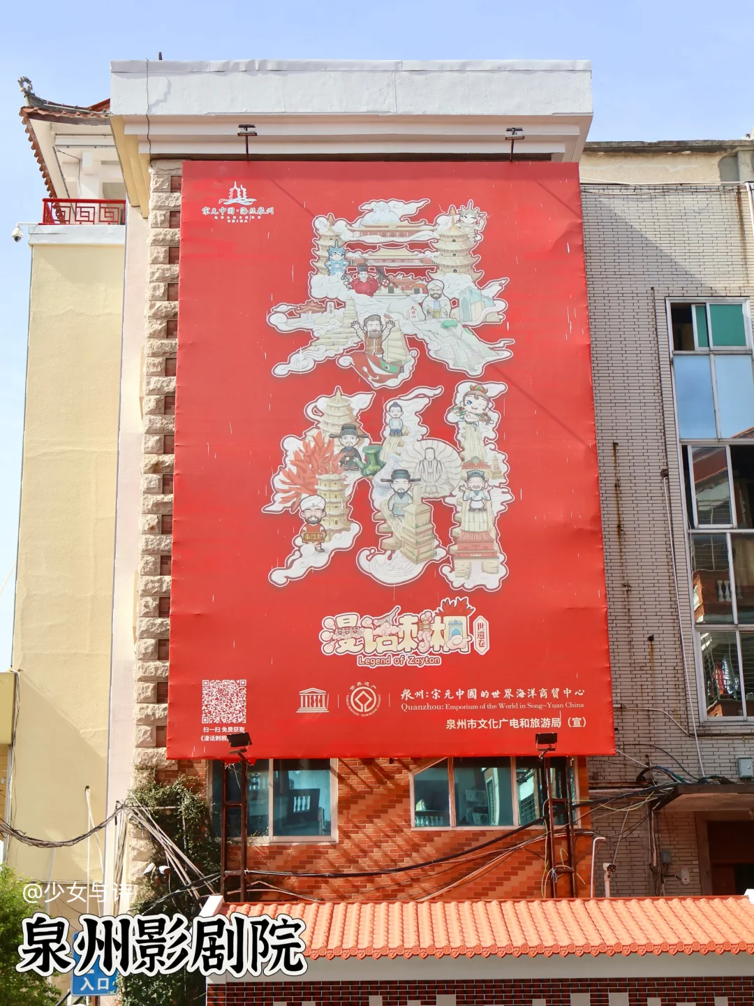 ✅泉州标志性打卡点!红色“泉州”大字搭配复古海报,马路对面或睿柏云平台(需入住,非免费)拍全景