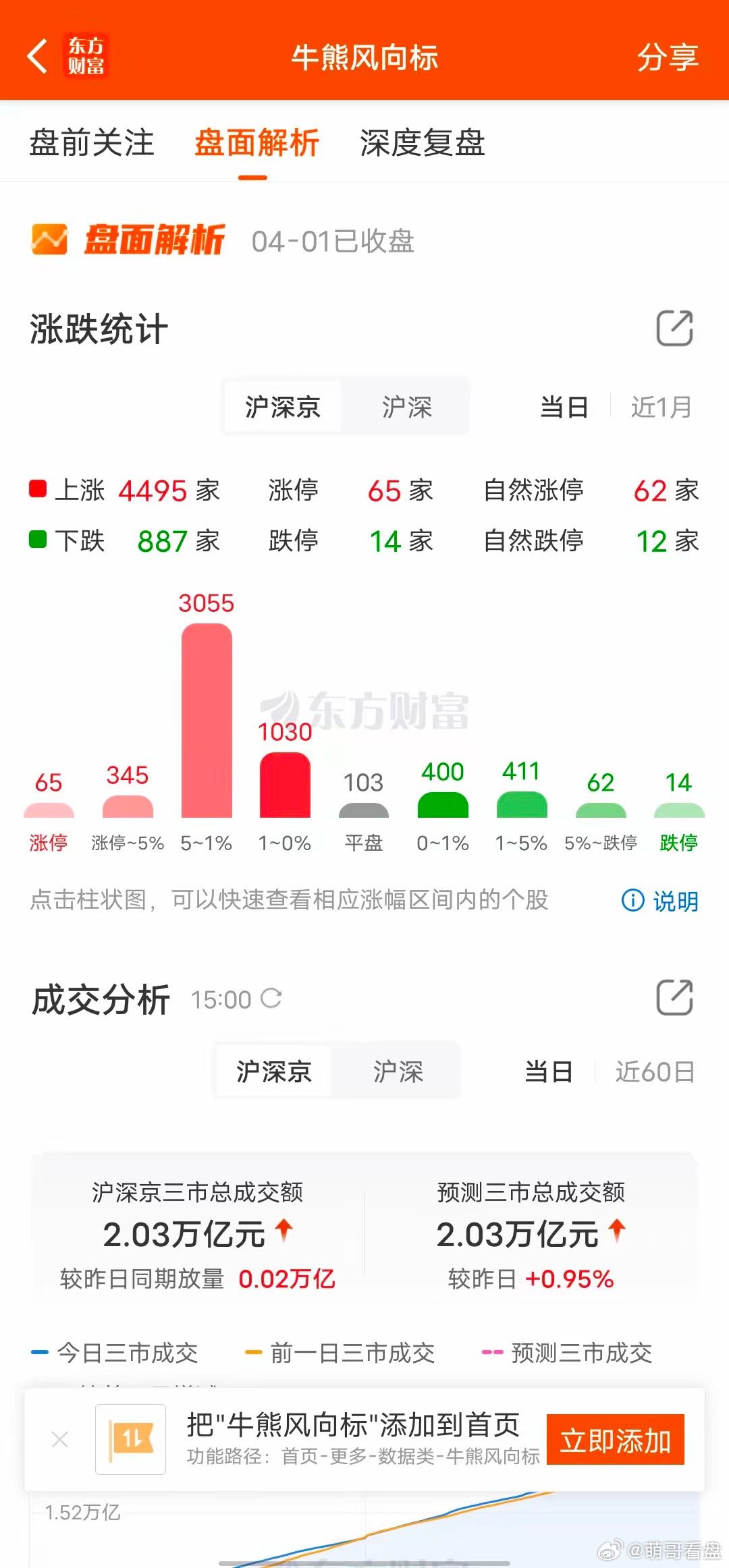 A股突然大涨!真正原因只有一个!周四,新一轮上涨正式启动还在猜今天为啥涨?别被杂音带偏!A股午后直线拉升、近4500股飘红,根本不是偶然,核心逻辑就一条——全球风险偏好彻底反转,叠加政策+资金双轮驱动,四月主升浪直接开跑!别不信,昨天还在跌、今天直接爆拉,这就是典型的底部反转信号。散户还在犹豫要不要追,机构已经抢筹扫货,北向资金狂买超60亿,主力资金净流入破800亿。我直接亮明观点:今天不是反弹,是反转!周四不仅不会回调,还要继续上攻,3950点必破,4000点近在眼前!一、今天大涨的真相:不是利好堆砌,是“情绪拐点+政策落地”共振很多人说今天涨是因为美伊缓和、外围大涨,这只说对一半。真正引爆行情的,是4月1日三大政策同步生效+季末资金压力清零,内外利好撞在一起,直接把空头按在地上摩擦。外围情绪彻底反转:隔夜纳指暴涨3.8%,全球避险资金疯狂涌入股市,中概股、A50提前走强,A股开盘就被推着涨。政策直接点火:《算力互联互通行动计划》今天落地,全国算力一张网启动,光模块、服务器、液冷全线爆发,多只20cm涨停。再加上央行宽松定调、交易所降费,资金彻底没了顾虑。资金面拐点确认:3月最后一天机构砸盘调仓,今天4月开局,抛压全消,内外资一起做多,2万亿成交量稳住全场。简单说:情绪转暖+政策发力+资金回流,三箭齐发,想不涨都难!二、别等了!周四只有一种走势:放量突破,继续大涨我炒股12年,这种底部爆拉大阳后第二天,只有加速上涨一种可能,尤其现在是四月开局、主线明确。那些说明天会分化、会回调的,根本没看懂行情性质:1. 技术面:3950点压力变支撑,突破无悬念今天沪指收3948点,离3950点一步之遥,尾盘明显抢筹。明天开盘直接高开突破,套牢盘变踏空盘,只会追高不会砸盘,3950-3970点直接拿下。2. 资金面:增量刚进场,根本没地方去今天外资、游资、机构刚进场,筹码还没拿够。清明假期前,资金只会抢筹不会撤离——现在不买,等节后涨高了再追?机构没那么傻。3. 主线明确:算力+医药双龙头,轮动上涨不熄火今天算力领涨,明天医药接力,轮动上涨、指数不断新高。不像以前普涨后就分化,这次是主线明确、资金扎堆,根本跌不下去。三、周四精准走势预判:高开高走,收中阳,剑指4000点开盘:高开0.5%-1%,直接突破3950点,不给散户低吸机会。上午:震荡走高,小幅回踩就被资金接住,站稳3960点。下午:放量拉升,冲击3980-4000点区间,收光头中阳。关键:个股继续普涨,但主线更强——算力、创新药、半导体继续领涨,低位板块补涨。四、给散户的操作忠告:别犹豫,这样干最赚1. 持股的:拿稳不动,别被洗出去今天大涨的票,尤其是算力、医药龙头,坚定持有,明天还有冲高。别赚两三个点就卖,主升浪才刚开始,卖了就接不回来。2. 空仓轻仓的:明天开盘直接干,别等回踩别等回调!明天小幅回踩就是上车机会,直接低吸主线核心股。优先选:光模块、创新药、算力租赁、液冷这些强势方向 。3. 绝对禁忌:别卖强买弱、别换股、别恐高!现在是强者恒强,弱势股只会拖后腿,主线龙头才是赚大钱的关键。最后说句掏心窝的今天的大涨,不是运气,是趋势反转的信号。四月行情已经拉开序幕,新一轮上涨正式开启。别再怀疑、别再犹豫,跟上主线、拿住筹码,周四一起吃大肉!评论区聊两句:你今天满仓了吗?手里拿的是算力还是医药?明天打算加仓还是持有?点赞+关注,周四一起见证突破4000点!
