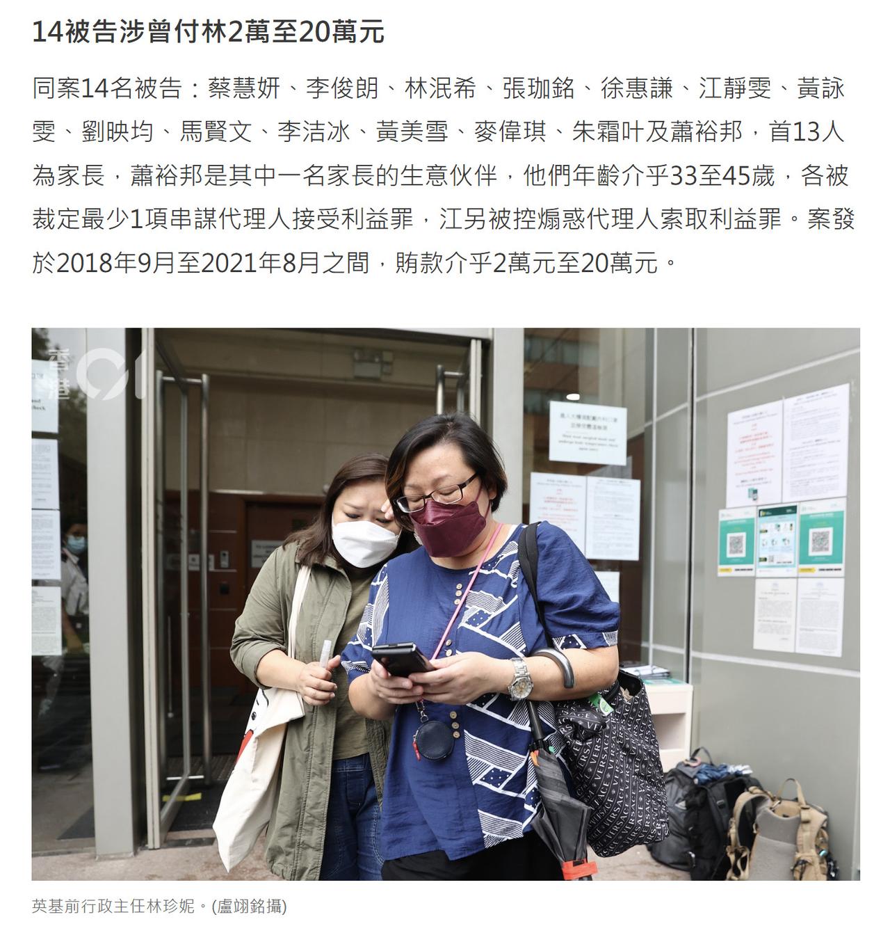 13位家长贿赂香港幼稚园全部被判刑。 13位家长加一位家长朋友,在2018年至