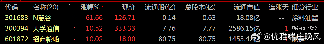 301683 N慧谷300394 天孚通信601872 招商轮船