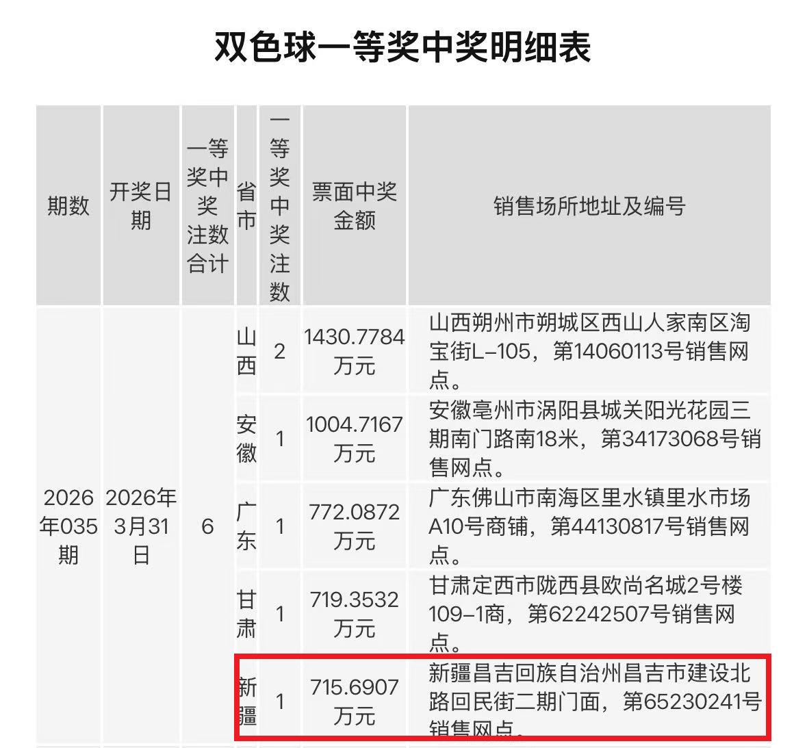双色球第26035期的开奖结果再次点燃了彩民的热情——全国共开出6注一等奖,其中
