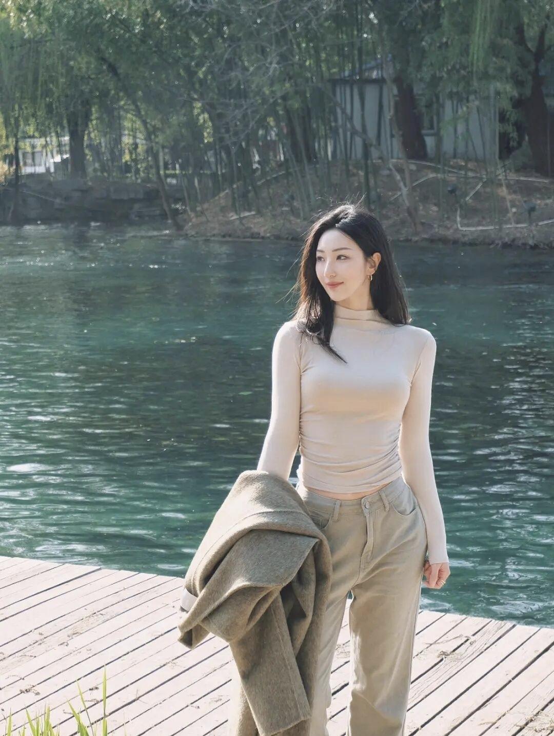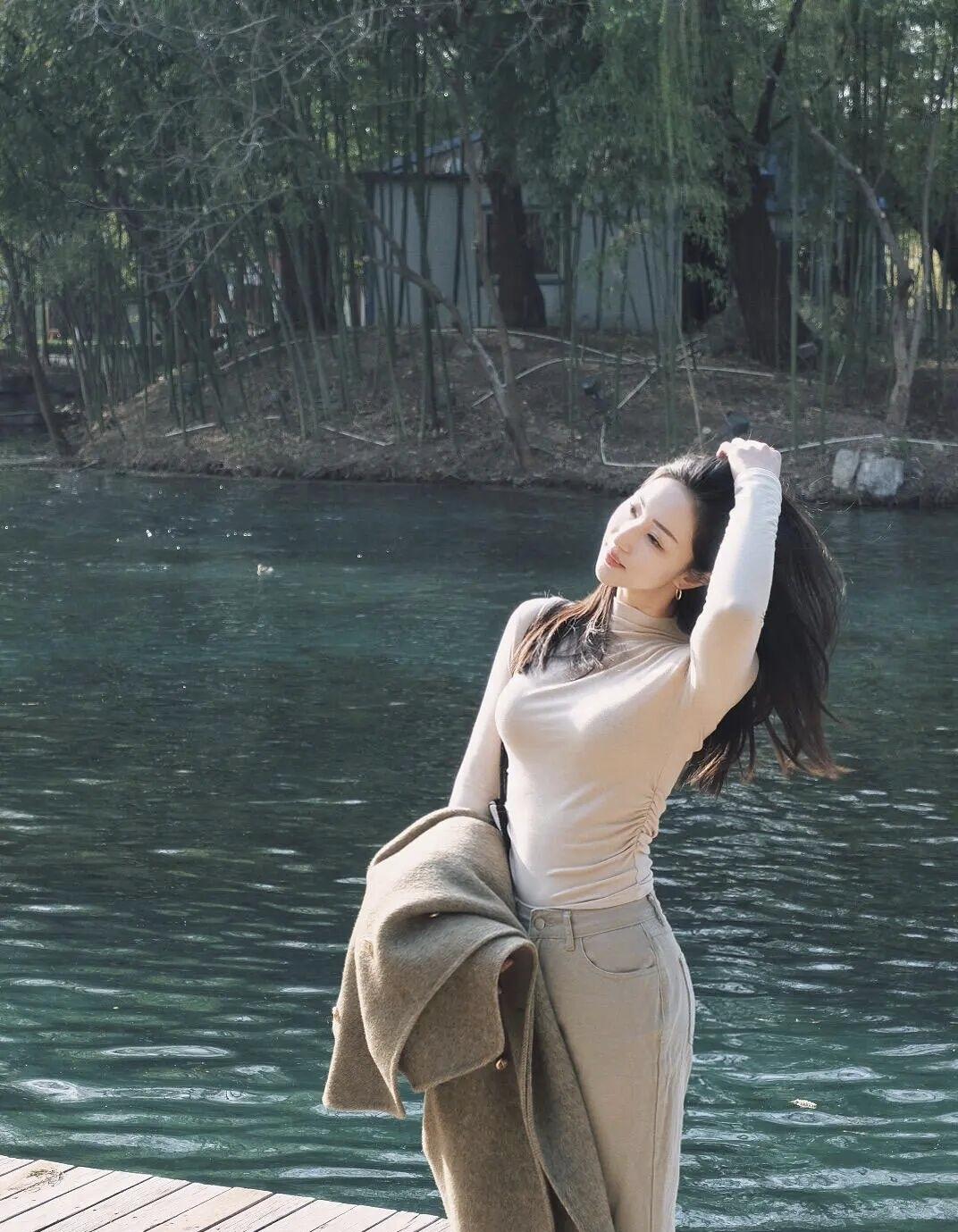 阳光洒在湖边,微风轻拂发梢,静享美好时光。
