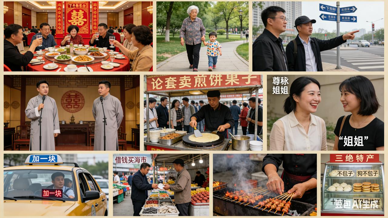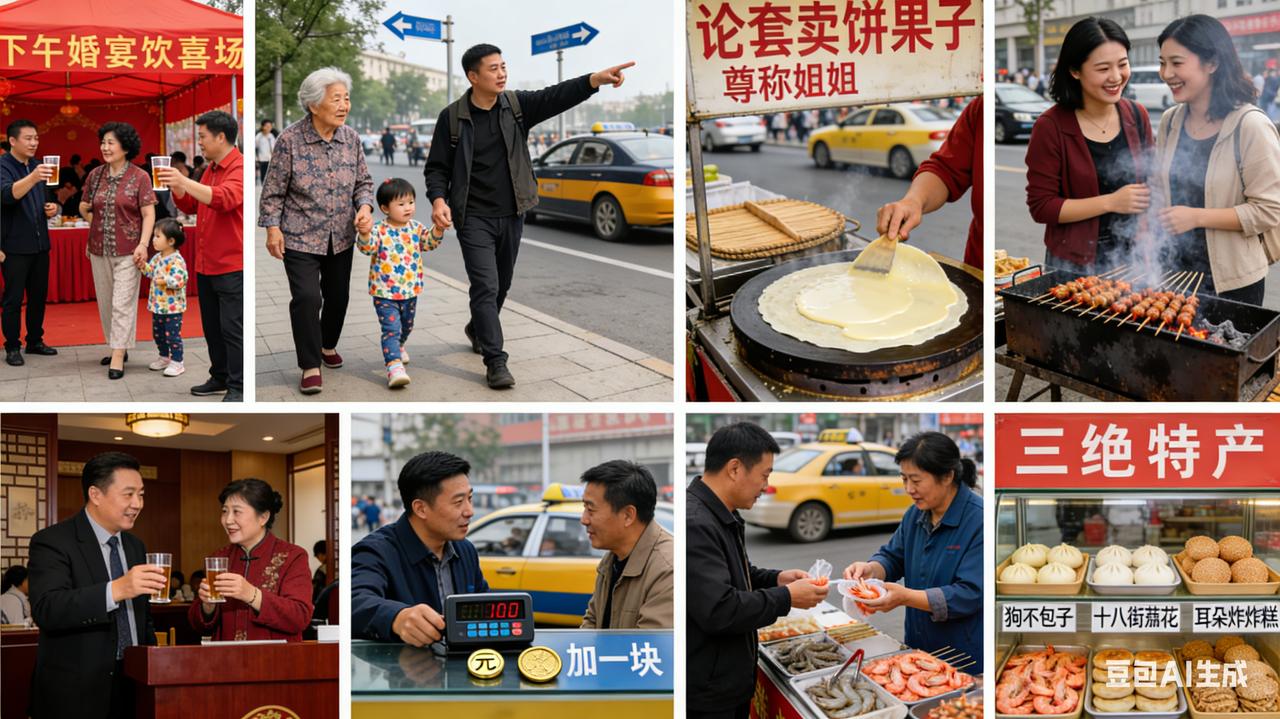 1 婚宴酒席下午摆 北方城市大多中午办婚礼,唯独天津市区习惯下午结婚。这和天津的工业历史有关——当年工人们上午要上班,只能下午办喜事 2 生了孩子姥姥带 天津人带孩子,姥姥是主力,奶奶反倒靠边站。这在全国也算独一份 3 给人指路左右拐 天津道路沿河而建,不是正南正北,所以天津人指路只说“左右”,不说“东西南北” 4 观众捧哏不上台 天津人听相声不光会笑,还会接茬儿——“噫!”的一声比台上演员还响 5 煎饼果子论套卖 煎饼果子不说“一个”,说“一套”。一套煎饼果子=煎饼+鸡蛋+馃子/馃篦儿,少一样都不算“完整的一套” 6 老少女士以“姐”代 天津人管年轻姑娘叫“姐姐”,管大妈也叫“姐姐”,这是尊称,不是乱叫 7 路边烧烤人人爱 天津人对烧烤的爱,不分春夏秋冬,不管高档饭店还是路边摊,撸串就完了 8 打车八块加一块 早年天津出租车起步价8块,但要额外加1块“燃油附加费”,外地人经常懵 9 想吃海货借钱买 天津有句老话:“当当吃海货,不算不会过。”为了吃口鲜,借钱也值! 10 本地三绝外人买 狗不理包子、十八街麻花、耳朵眼炸糕——这三样天津人自己其实不怎么吃,倒是外地游客必买