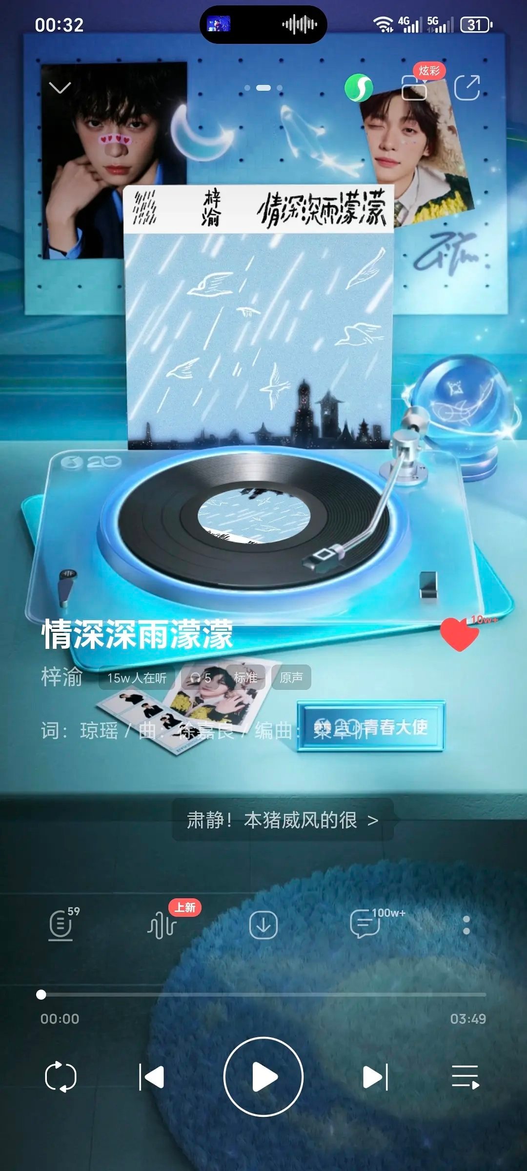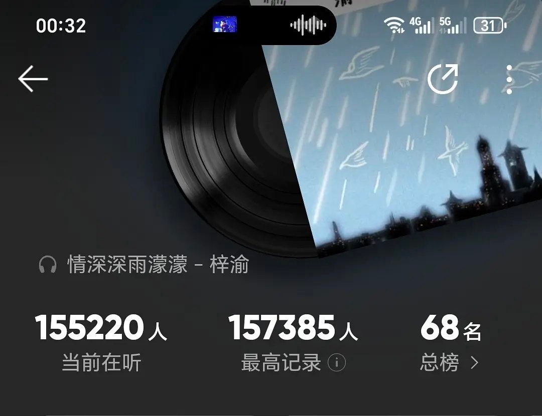 梓渝预热半天空降的翻唱曲,大晚上的最高在线人数15.7万什么水平????收藏破10万 评论也已破百万,最高点赞破3万。梓渝情深深雨濛濛梓渝情深深雨濛濛上线梓渝工作室预告新歌