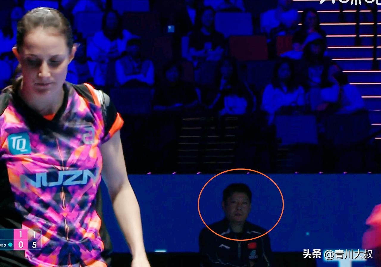 我去!邱贻可现场指导这么牛!太精准了, 昨天邱贻可指导小蘑菇, 3:1爆冷的早田希娜。 今天第一局 覃予萱11:8拿下温特。 局间邱贻可说: 接发球可以拧拉, 两条线都可以拧, 发球可以多给正手, 不要总给反手位。 结果第二局覃予萱没听话, 连发反手。 结果就是 第二局温特8:1开局, 10:3拿到局点, 11:5拿下。