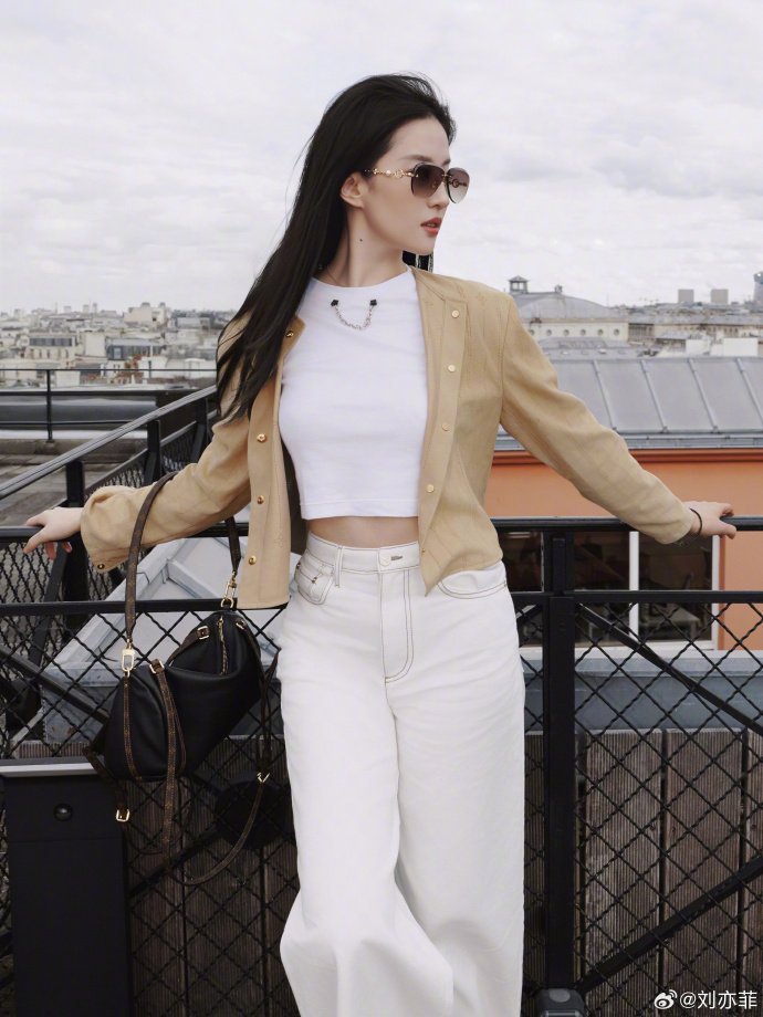 刘亦菲墨镜女王刘亦菲白色露脐装 刘亦菲墨镜女王来的!!好酷刘亦菲