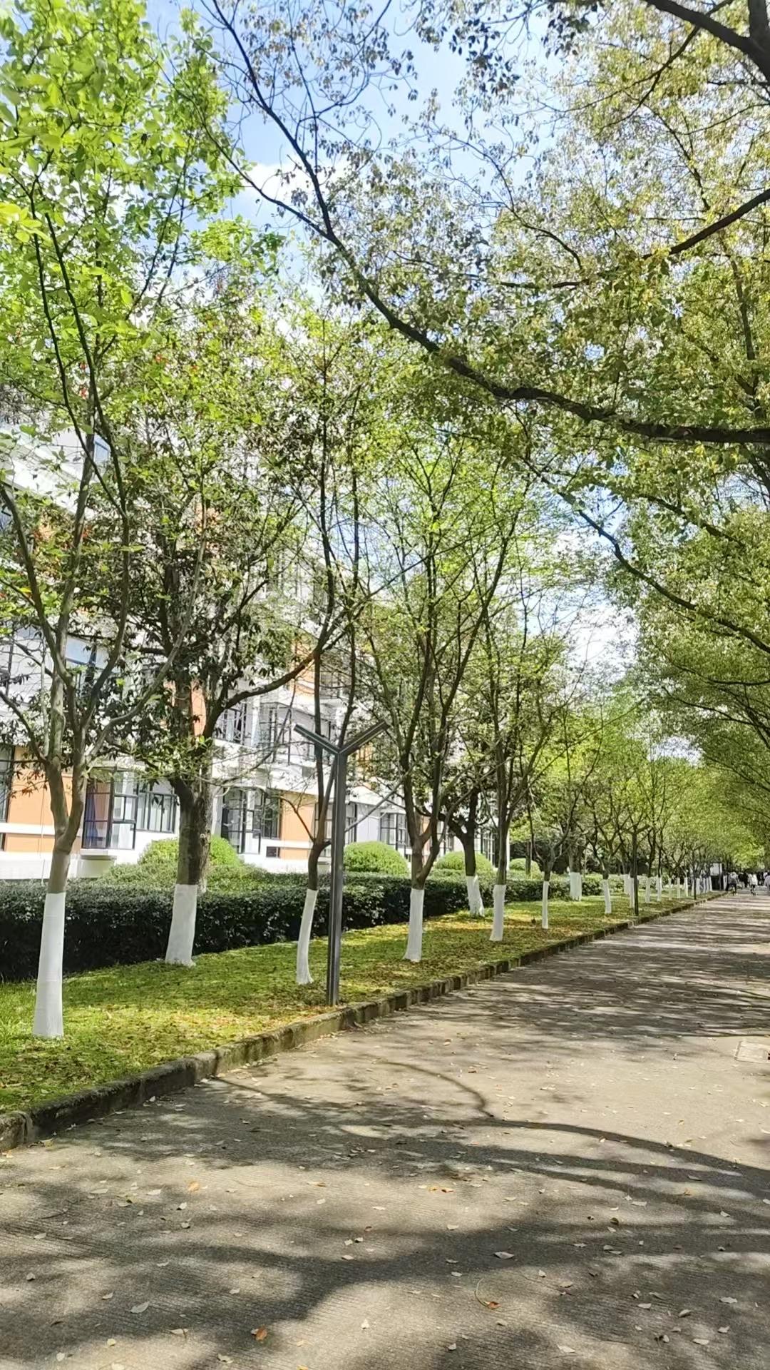 春日漫步校园,落叶铺满小径,静享宁静时光。