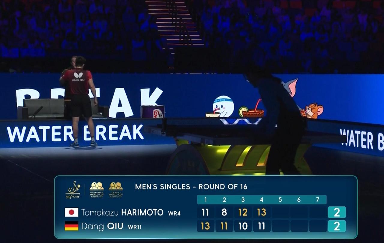 别说!张本智和粉丝虽然少,但是喊声还挺大, 每次比赛前, 她们便不合时宜的喊:哈利摩托。 有的喊:张本智和,加油! 气的张本智和发球暂停好几次。 而真正比赛的时候, 邱党的球迷比较多, 但是人家很有素质, 只是在赢球的时候, 来一点掌声。 前三局 邱党2:1领先。 第四局 张本智和3:1开局, 邱党4:3反超。 随后两人又是胶着, 有一次打到10:10, 张本智和12:10拿下。 邱党太可惜了。