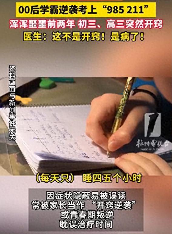“万万没想到!”浙江杭州,一女生初三时成绩突飞猛进,考入重点高中,高三再次逆袭考上重点大学,家长很高兴,以为孩子“开窍了”,直到大学毕业前,女生情绪崩溃,家人才察觉异常,带去医院检查,确诊为双相情感障碍!   杭州七院的专家给出诊断:双相情感障碍,即躁郁症。女孩初三和高三那两次所谓的“成绩突飞猛进”,根本不是学习开窍。   那是疾病发作时的“躁狂相”。她每天只睡四五个小时,精力爆棚,其实是病态的亢奋。   家长完全懵了。他们一直以为孩子是受了激励,发奋图强。只要成绩好,一切反常都被合理化了。   这种“唯成绩论”的认知盲区,让女孩错过了初三、高三两个最佳干预节点。长达七八年的病程,就这样披着优异成绩的“外衣”被掩盖了。   这绝非孤例,它折射出全球精神卫生隐患。世卫组织的数据极其惊人。全球双相情感障碍患者占总人口的0.52%,总数高达4000万人。而在中国,该疾病终身患病率也达到了0.6%。这是一个极其庞大却被严重忽视的群体。   双相情感障碍极其“狡猾”。它的核心症状是情绪的两极波动。抑郁症发作时,患者情绪低落、少言寡语。大众对此多少有些警惕。   但躁狂相发作时,患者情绪高涨、话多、睡眠需求锐减。这种状态极具欺骗性,很容易被误认为是状态大勇。   在高度竞争的教育模式下,这种欺骗性被无限放大了。“吃苦、熬夜、拼命”常被视为上进。单一的评价体系,竟然对心理疾病的病理特征进行了“奖赏”。   过度内卷正在隐秘地摧残青少年的身心健康。   当规则不再保护你时,你必须保护自己。这句话同样适用于我们的教育生态。当单一的升学指标掩盖了生命的真实需求,家长必须清醒。   突然异常努力加上长期少睡,绝不等于开窍。它极有可能是心理疾病亮起的红灯。   3月30日报道一出,网友直呼“万万没想到”。医学界人士则深感痛心。遗传因素在双相情感障碍中占比极高,约达80%。   但外界压力往往是致命的诱发因素。女孩在大四面临毕业压力时彻底崩溃,正是多重重压下的总爆发。学校的心理健康教育绝不能只停留在发几张问卷。   此次事件,对许多深陷“唯成绩论”的家庭来说,是充满教训的。尽管过去大家一直乐于搭乘“应试教育”的顺风车,但如今的心理危机局面必须打破。   我们需要变革,必须防微杜渐。切勿等到病情严重、危及生命时才追悔莫及。   家长们必须明白,孩子的繁荣昌盛源于他们是健康的人,而不是一台台考试机器。