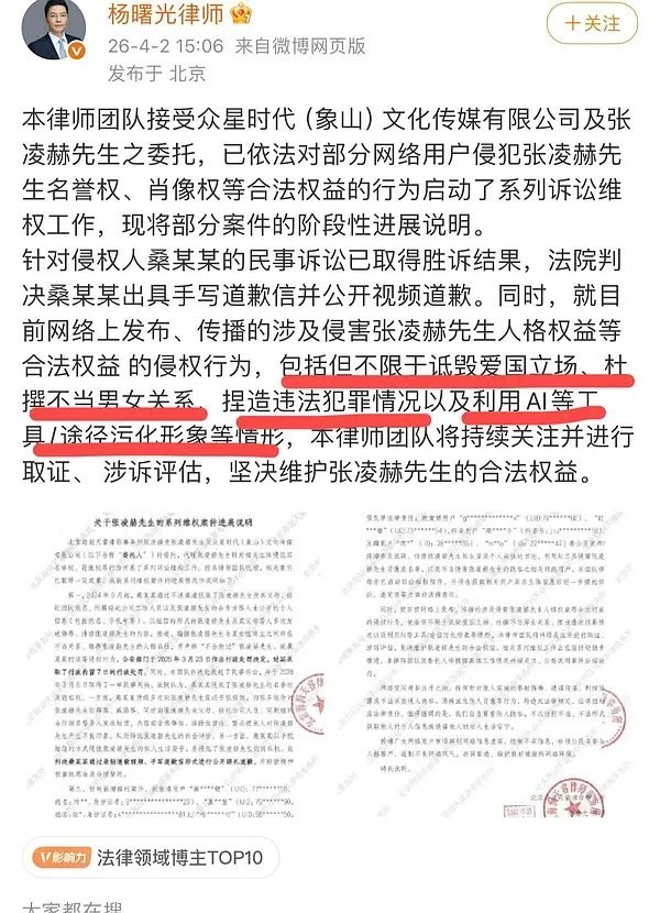 张凌赫工作室发布维权声明,造谣张凌赫的某网友已拘留➕视频道歉➕手写道歉信;恶意Ai已进入司法程序。。。
