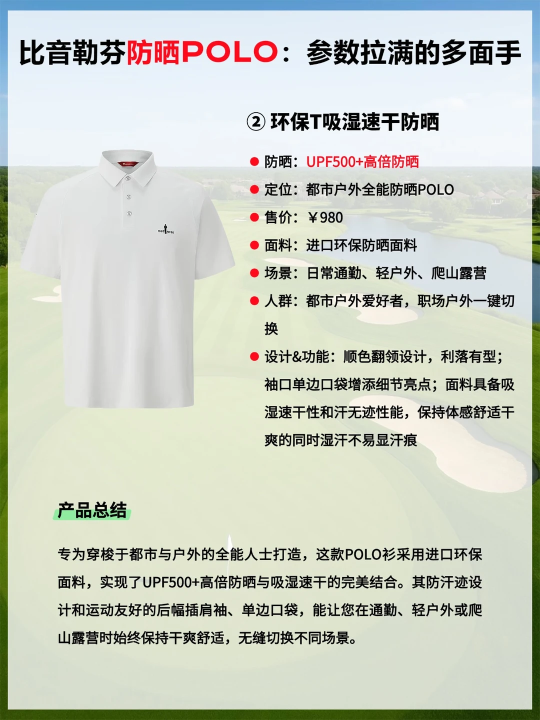 · 兼顾日常通勤与轻户外,需要高倍防晒与干爽体验,980元环保T是全能之选。