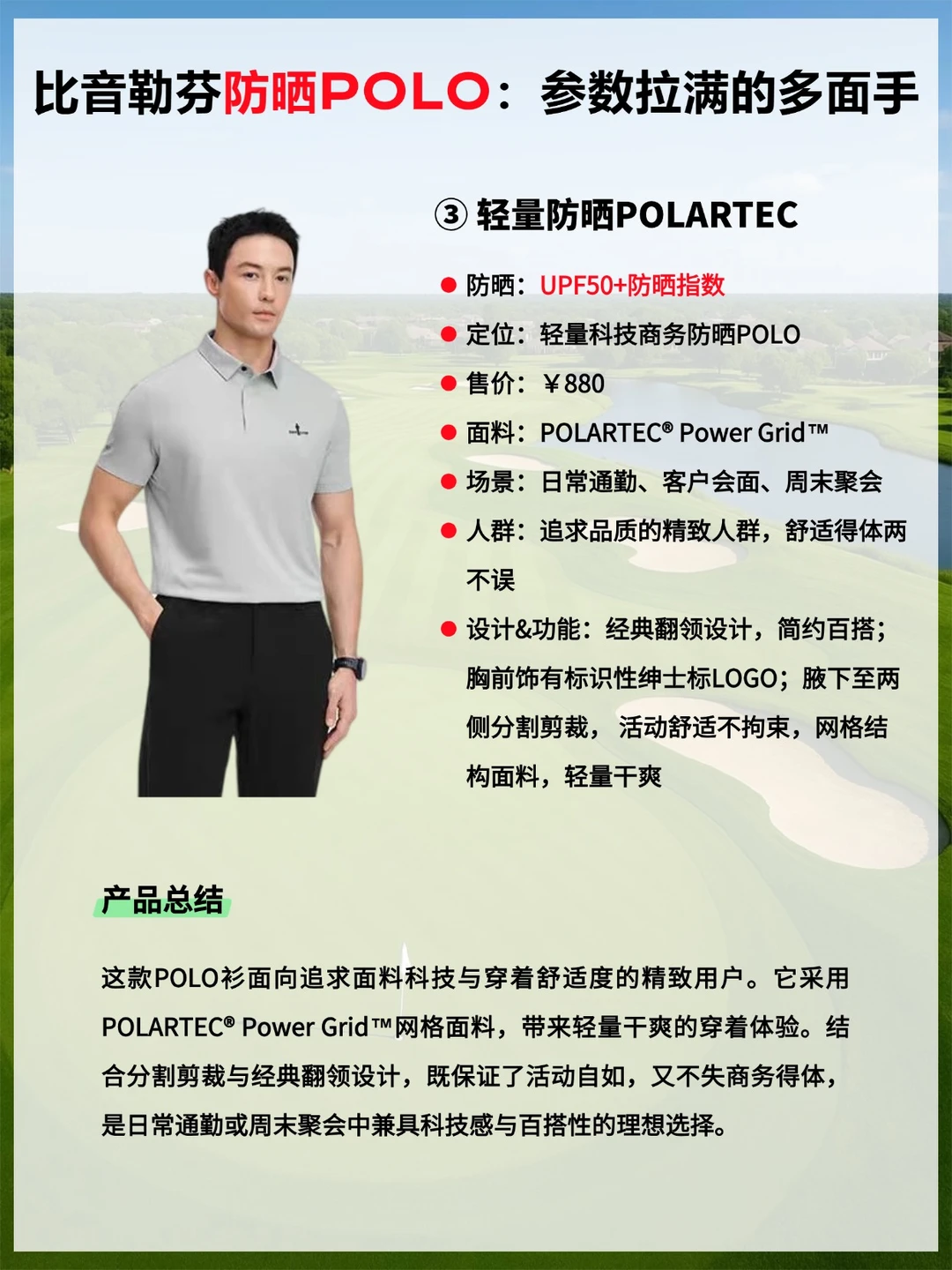 · 适合:注重精致形象的商务人群,适用于轻度高尔夫、商务休闲及精致聚会等场景。