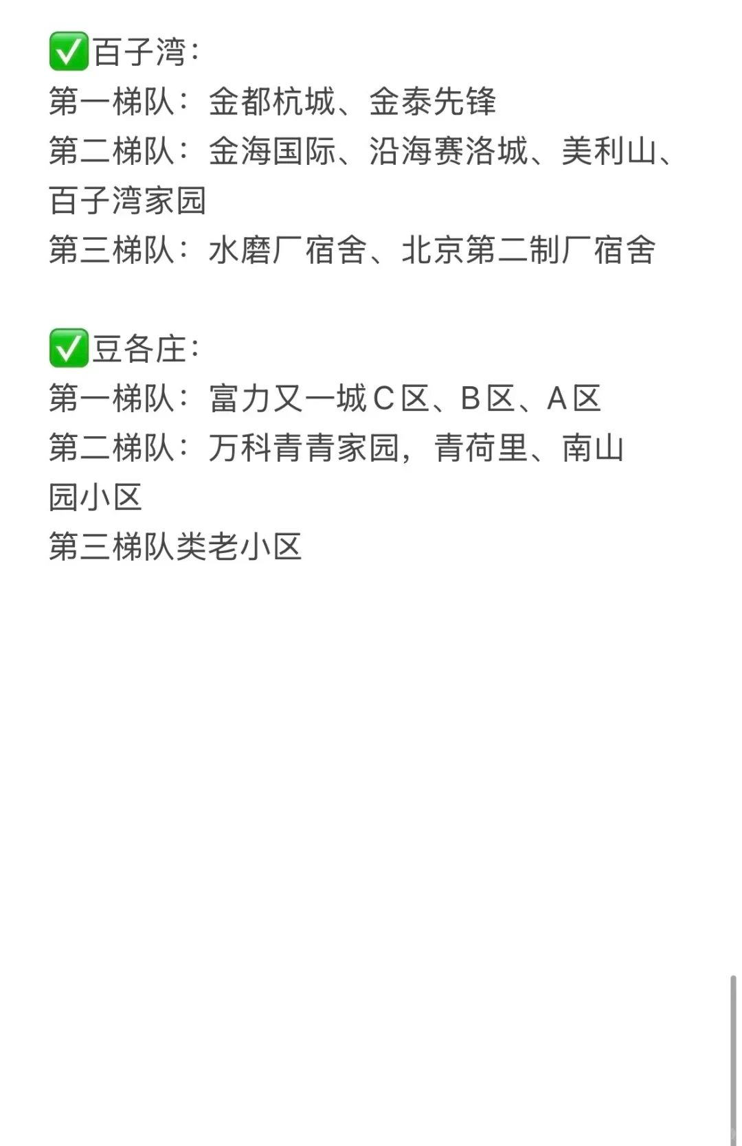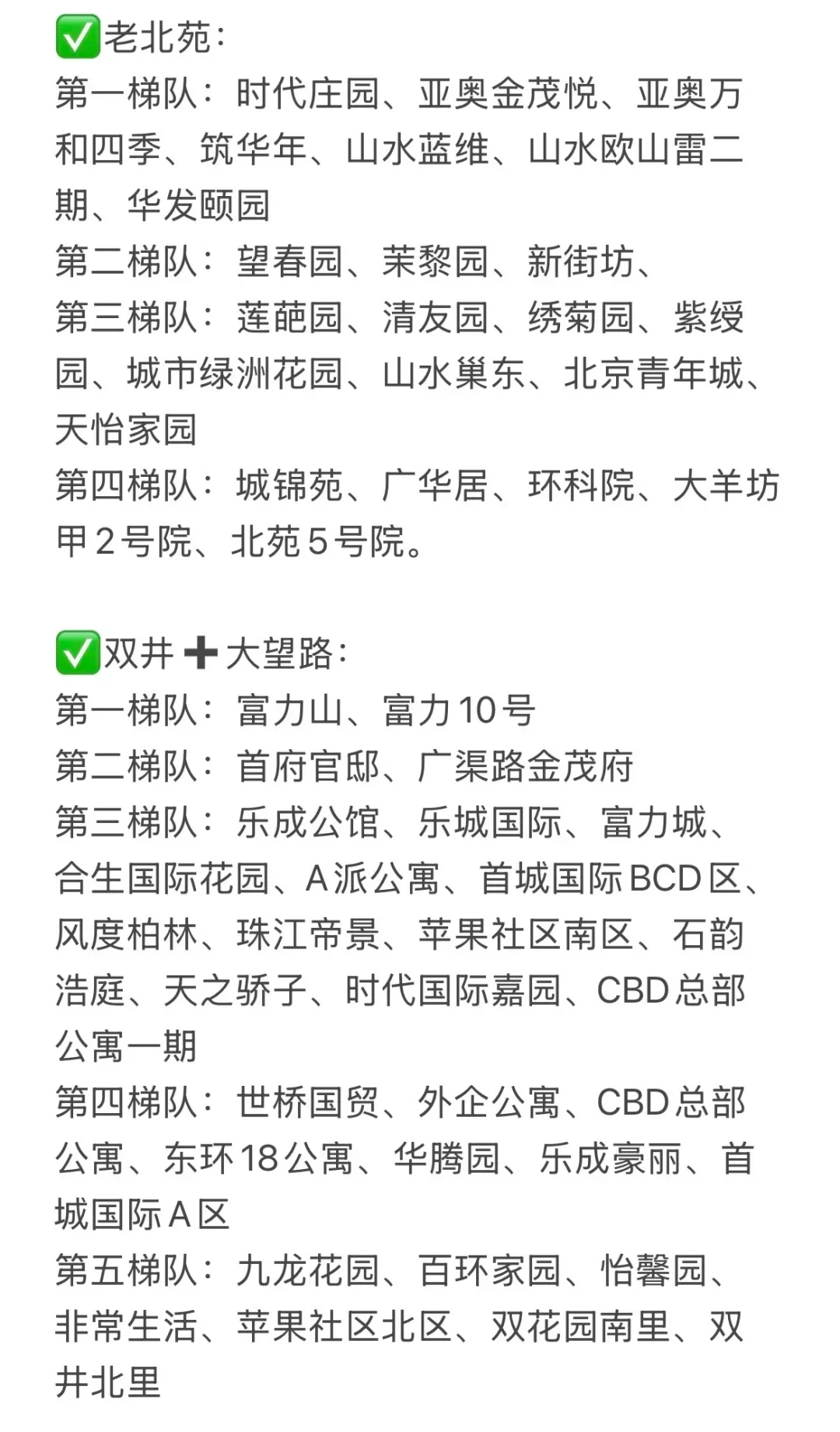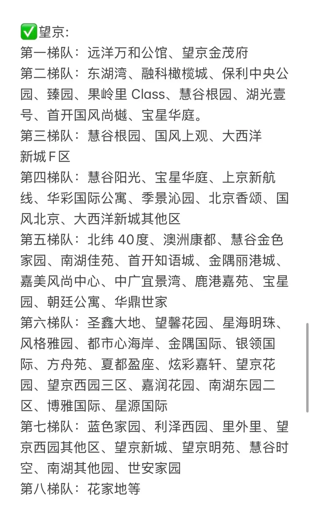 第四梯队:青年汇佳园、国美第一城、朝阳民第五梯队:汇成家园、雅成一里、朝阳雅筑、丽景馨居