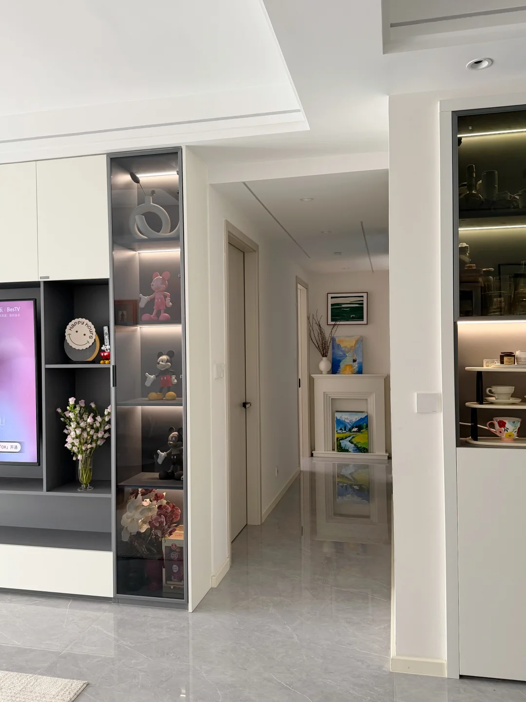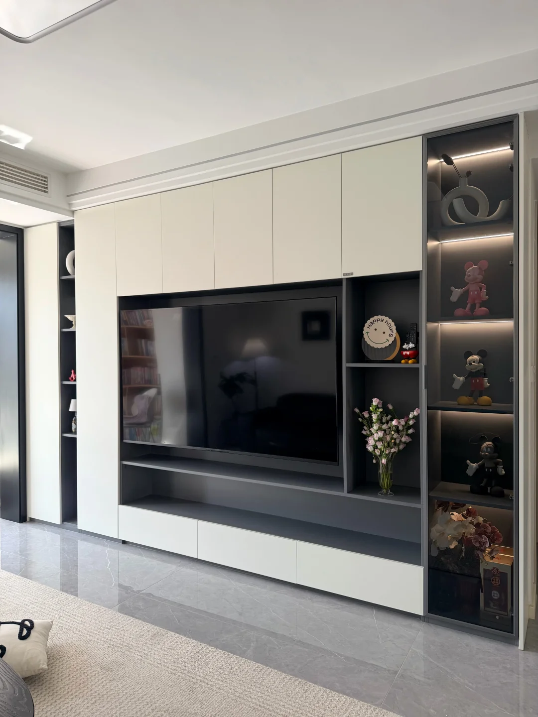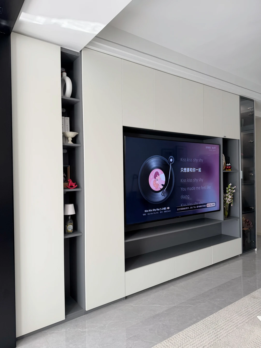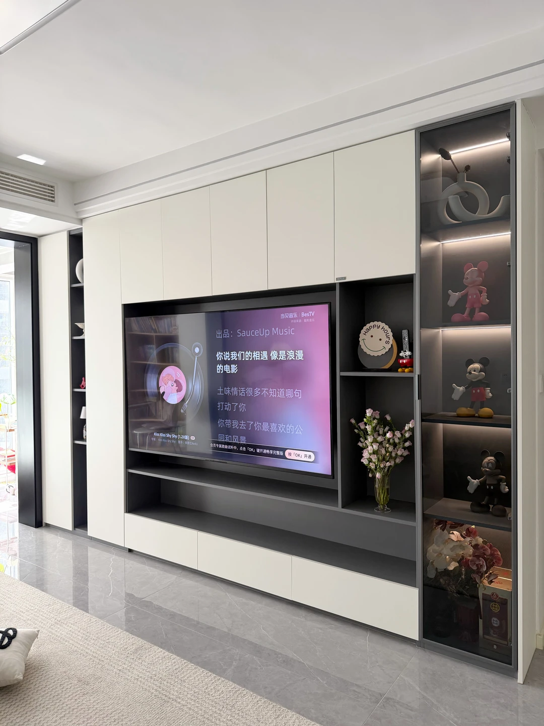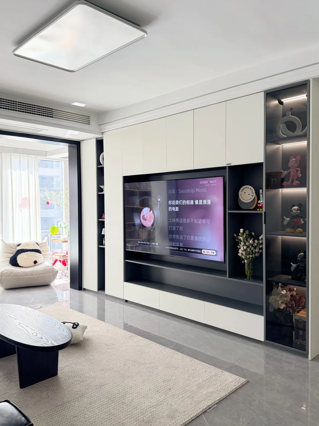 客厅装修灵感库 满墙电视柜 我细腻的家 普通却干净的家 电视满墙柜 居住趋势 黑白灰装修 布置自己的家 跟着学装修 人见人夸的小家