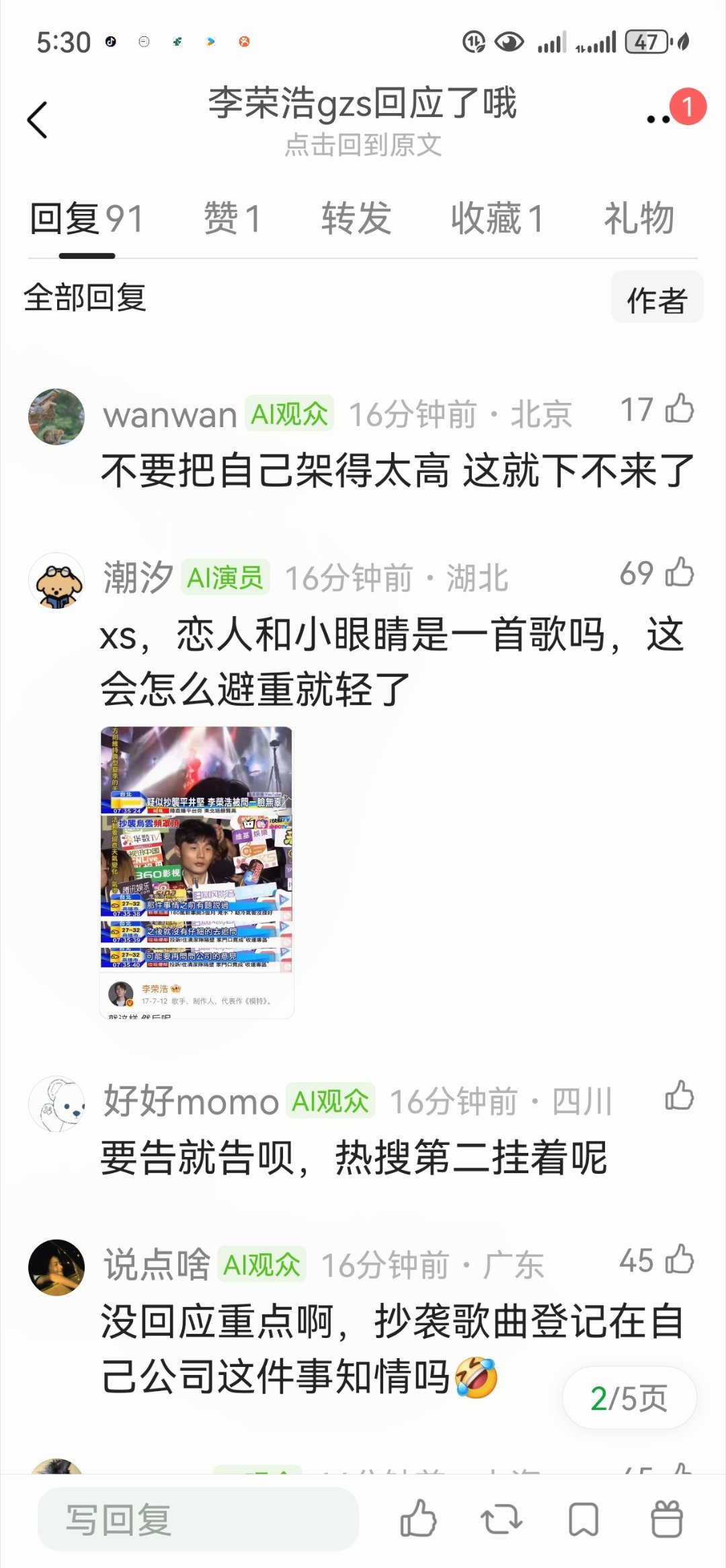 从“大家一定等我消息”到“本人不再回应”发生了什么😧李荣浩方否认恋人抄袭