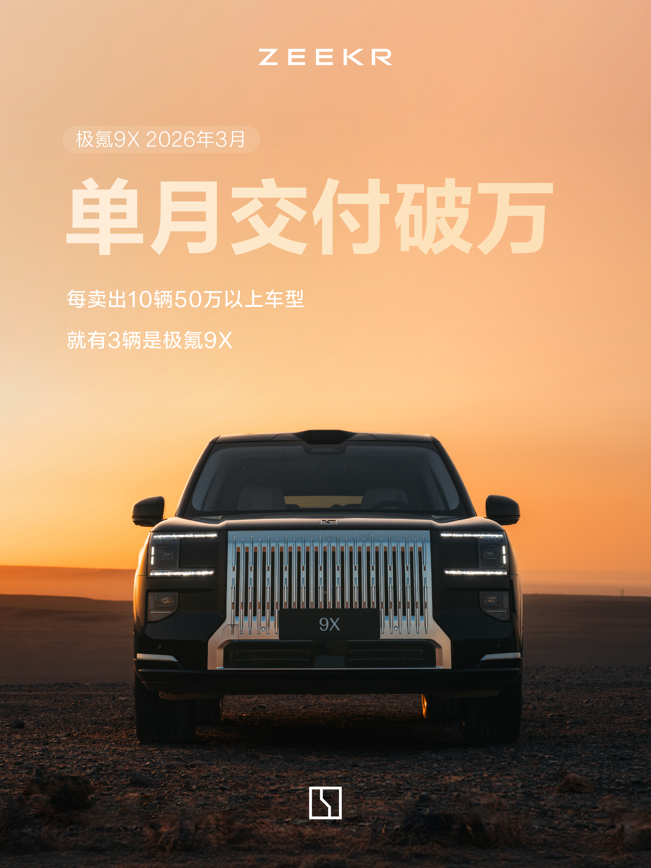 这是一条值得所有关注中国汽车行业的人,都认真看一眼的数据:极氪9X,三月单月交付量破万。