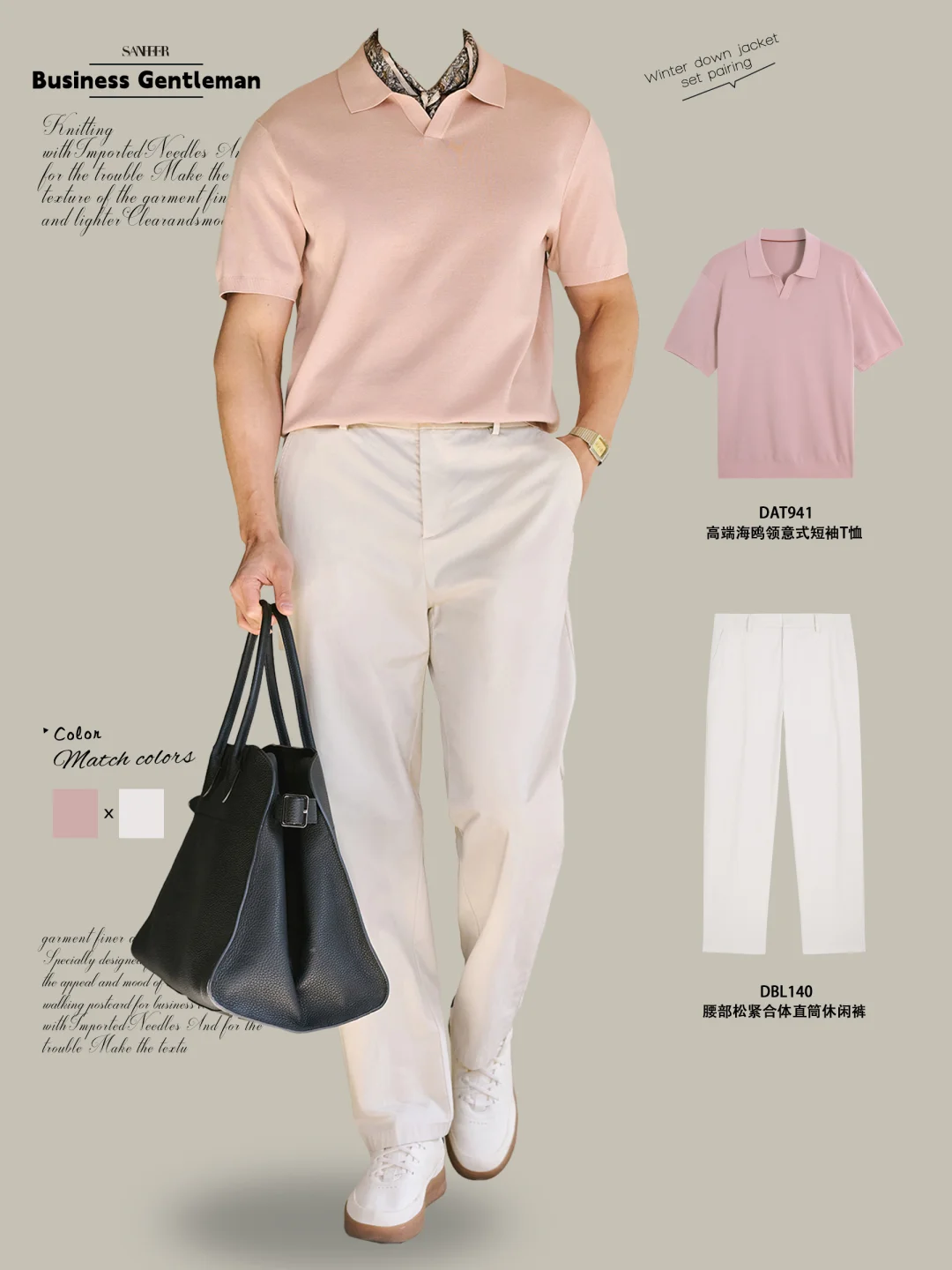 低饱和莫兰迪色 POLO + 同色系休闲裤