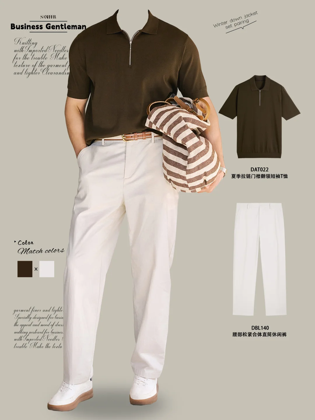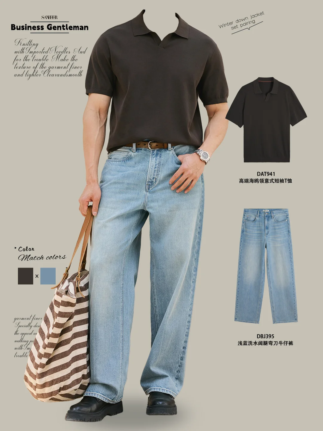 深棕 / 藏青 POLO + 直筒牛仔裤