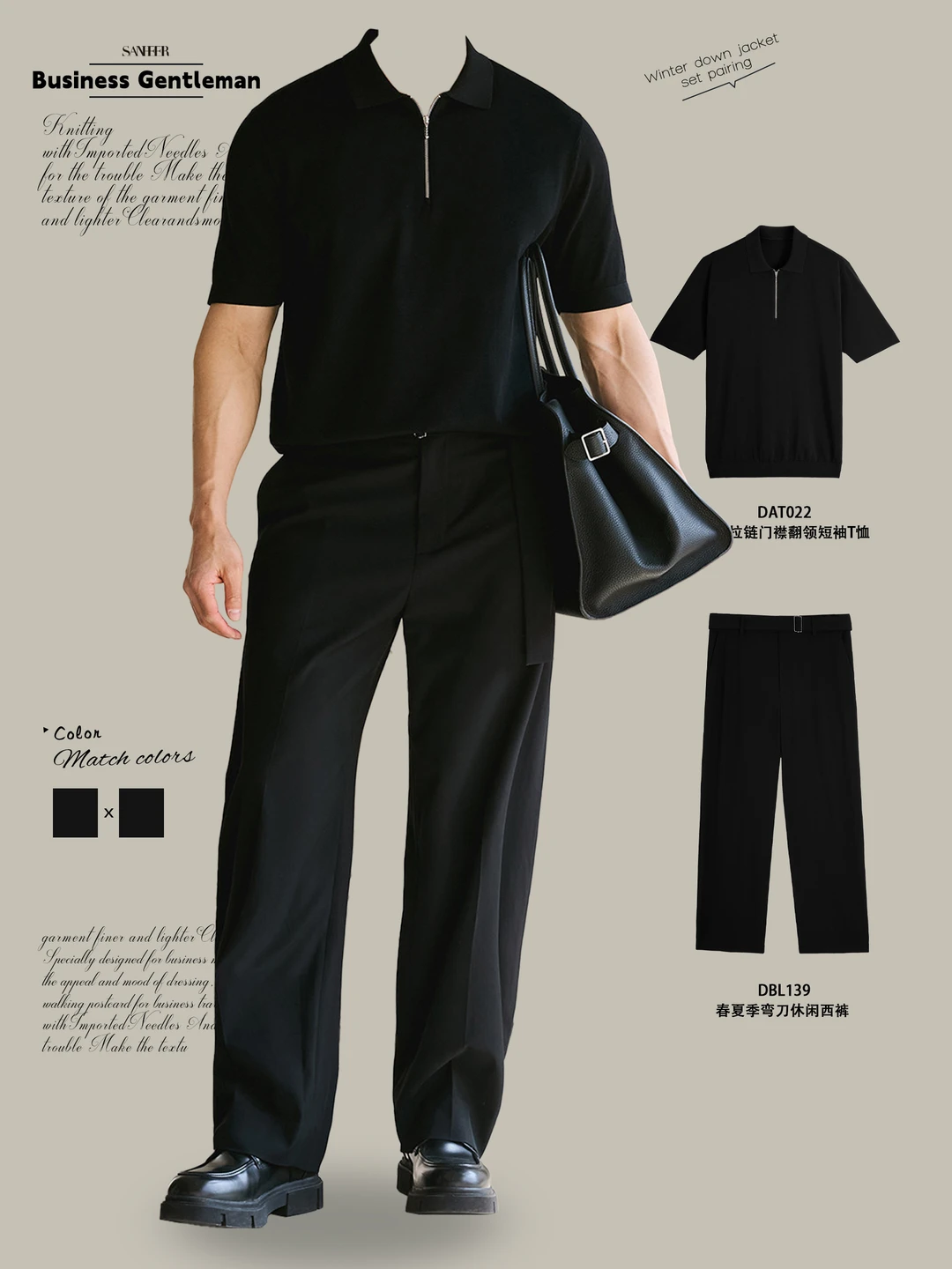 黑 / 白 / 灰基础款 POLO + 垂感西裤 / 阔腿牛仔裤
