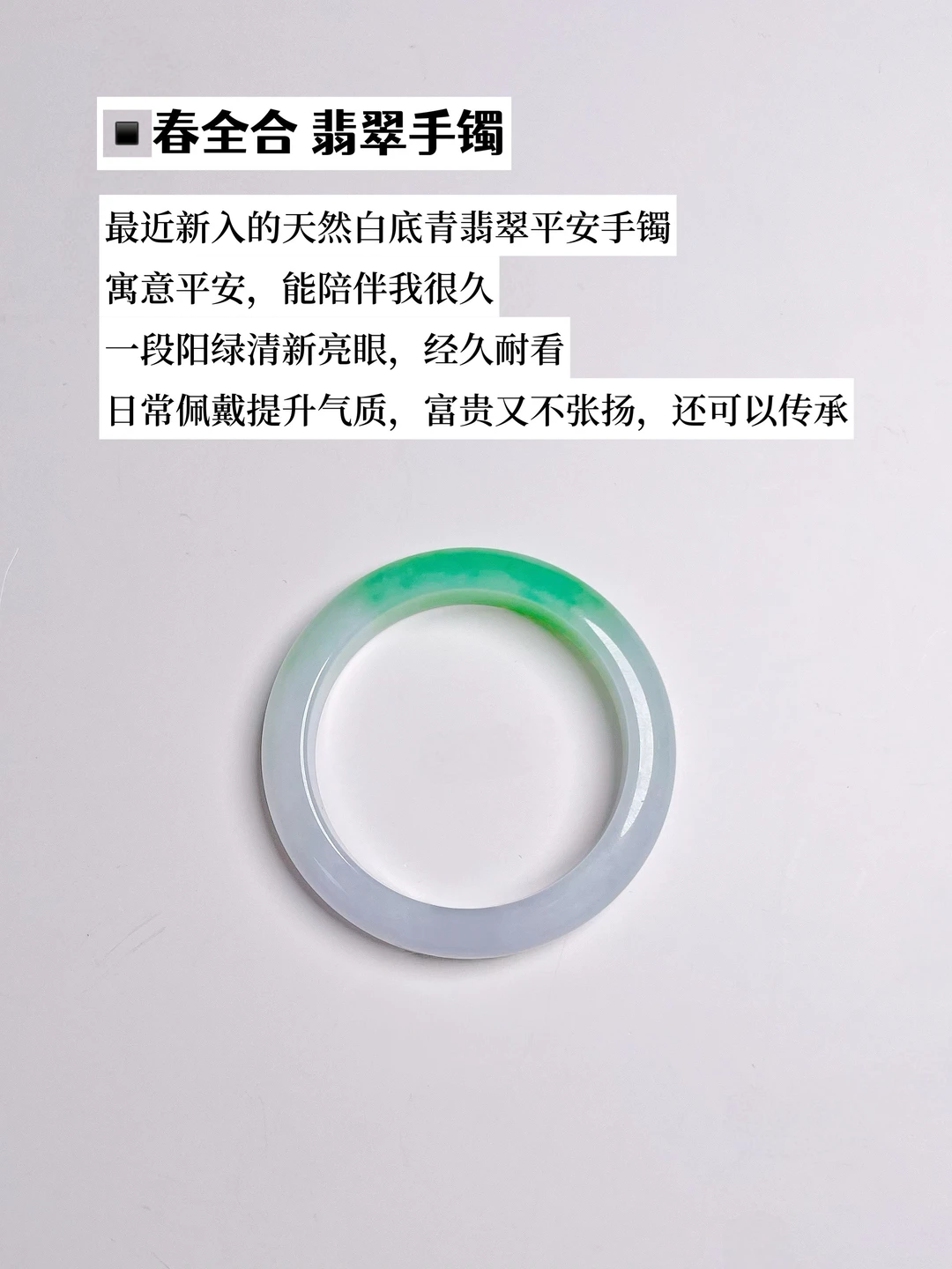 最近新入的天然白底青翡翠平安手镯