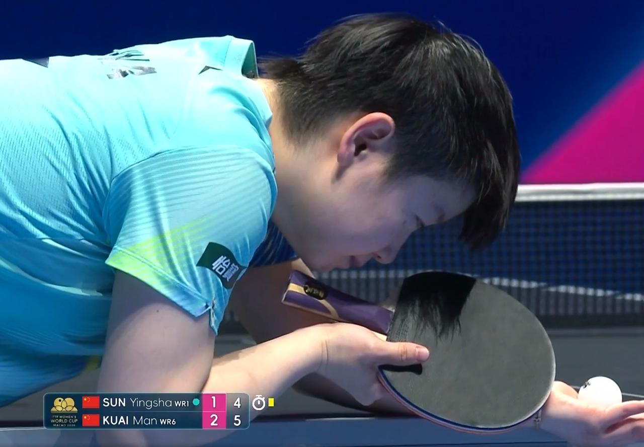 突发!孙颖莎怎么有了一张黄牌? 前三局 孙颖莎1:2落后, 第四局 孙颖莎3:0开局, 蒯曼5:4反超后, 孙颖莎叫了暂停。 暂停回来, 孙颖莎怎么突然多了一张黄牌? 也没说什么原因, 我估计是发球慢了。 不过莎莎没受影响, 追到了6:6平。 两人今天真是平分秋色, 不过为啥给莎莎黄牌? 我看看回放去。