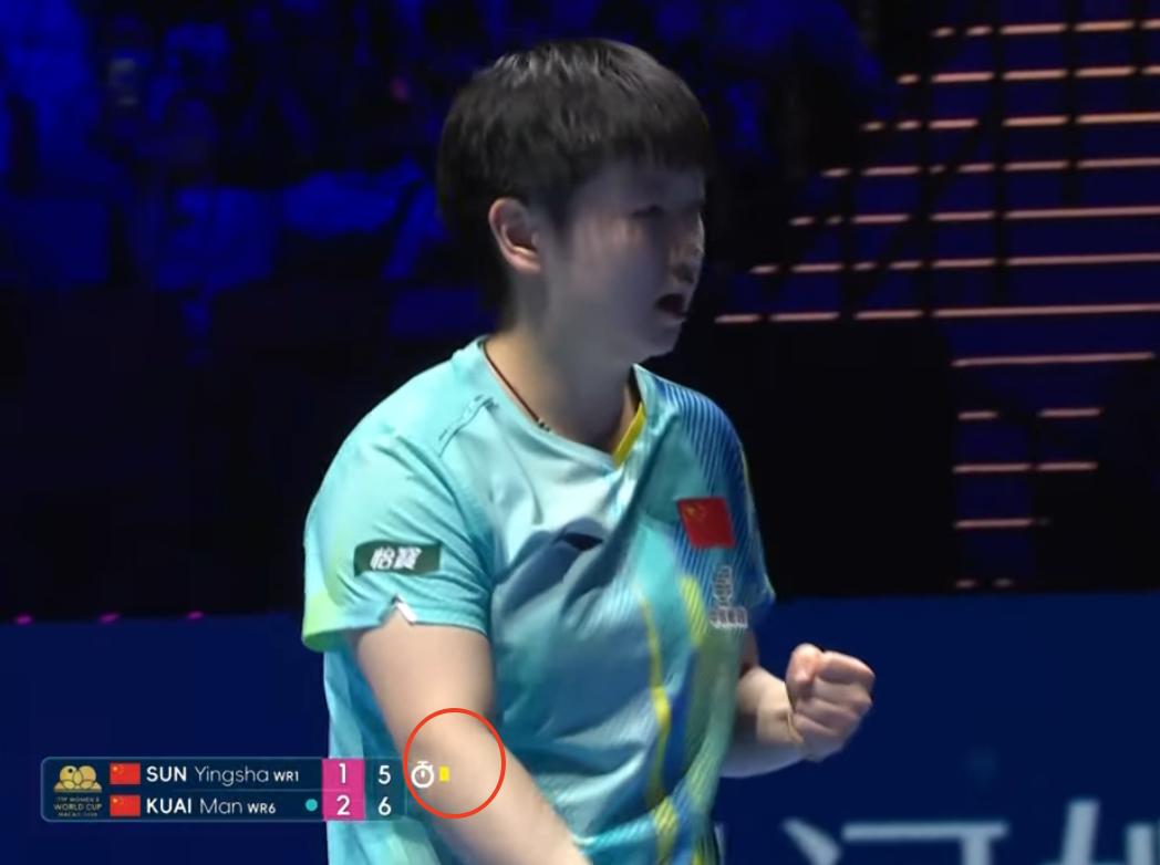 终于看到孙颖莎为啥给了黄牌? 第三局 孙颖莎3:1开局, 蒯曼5:4反超后, 孙颖莎叫了暂停, 暂停回来, 直接给了黄牌, 直播中没有任何提示! 我估计是孙颖莎走路慢了, 因为拖延时间, 给了一张黄牌。 不过最后孙颖莎12:10拿下第四局。 前四局 两人打成了2:2平。