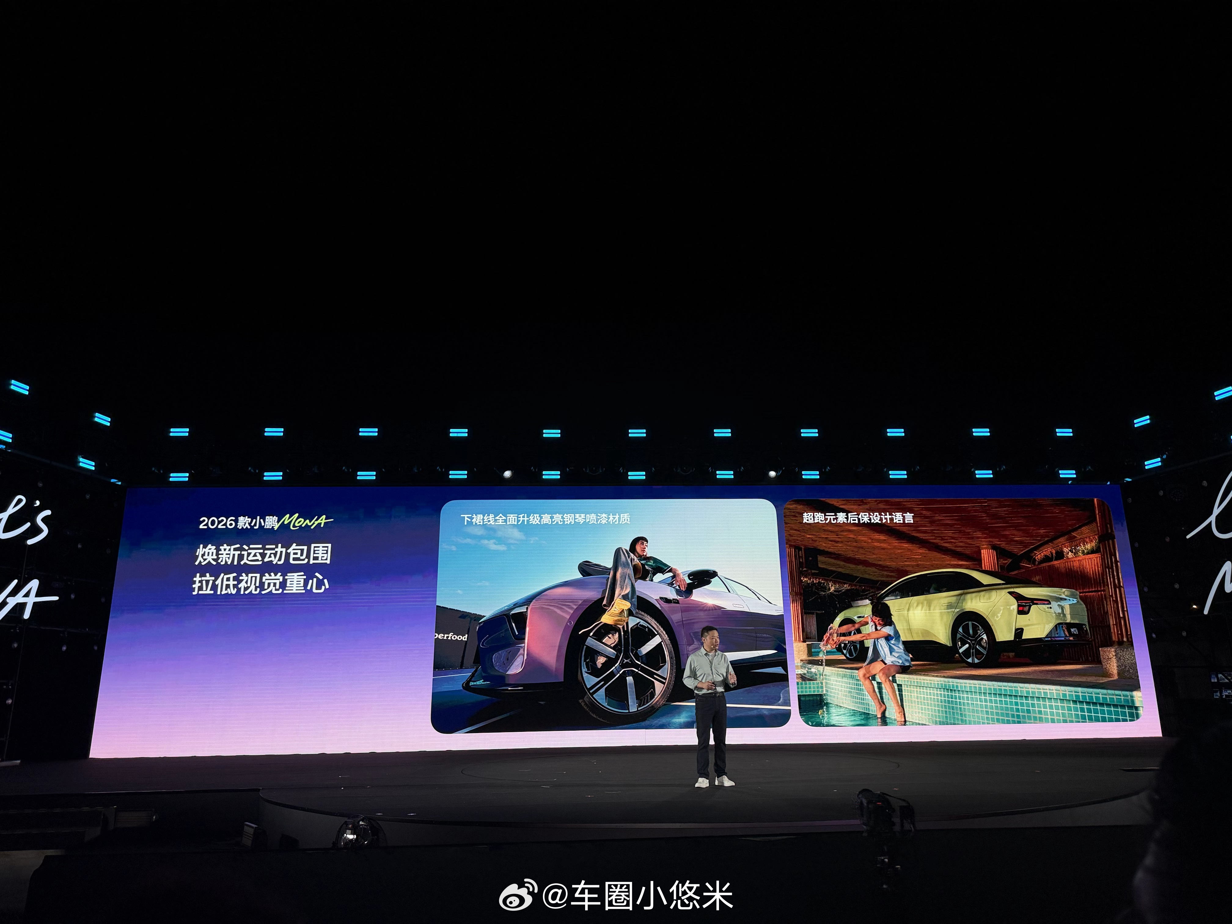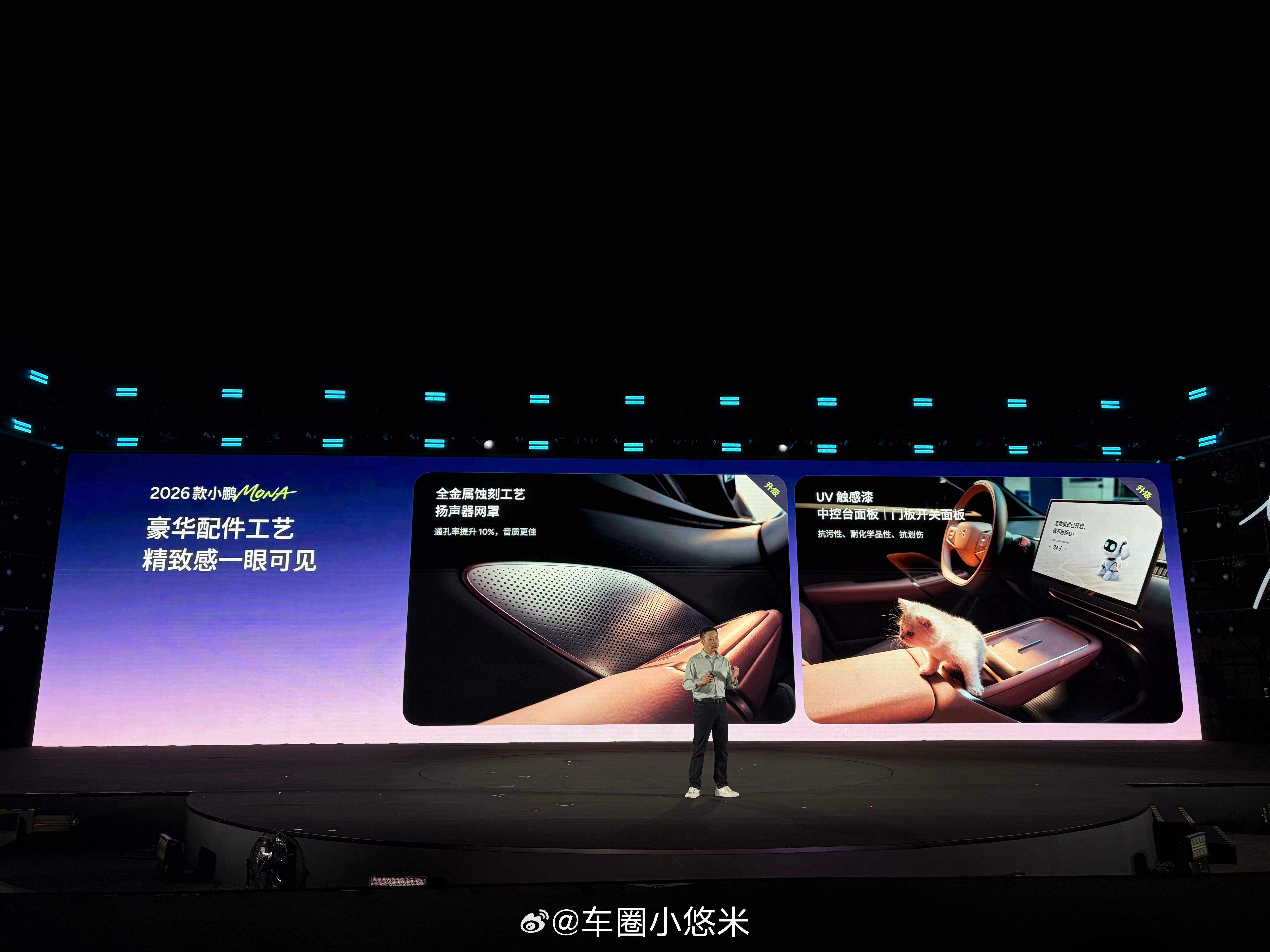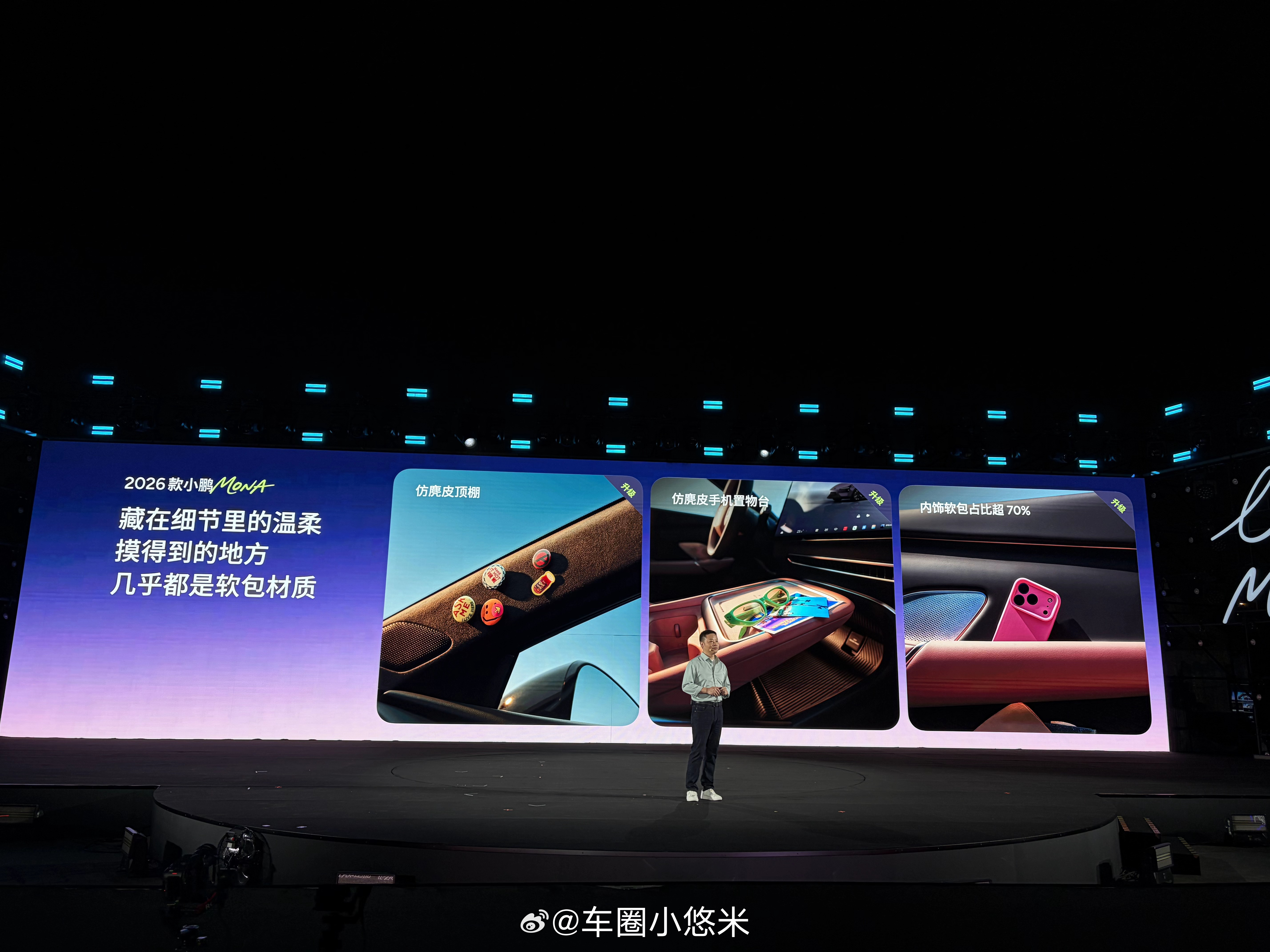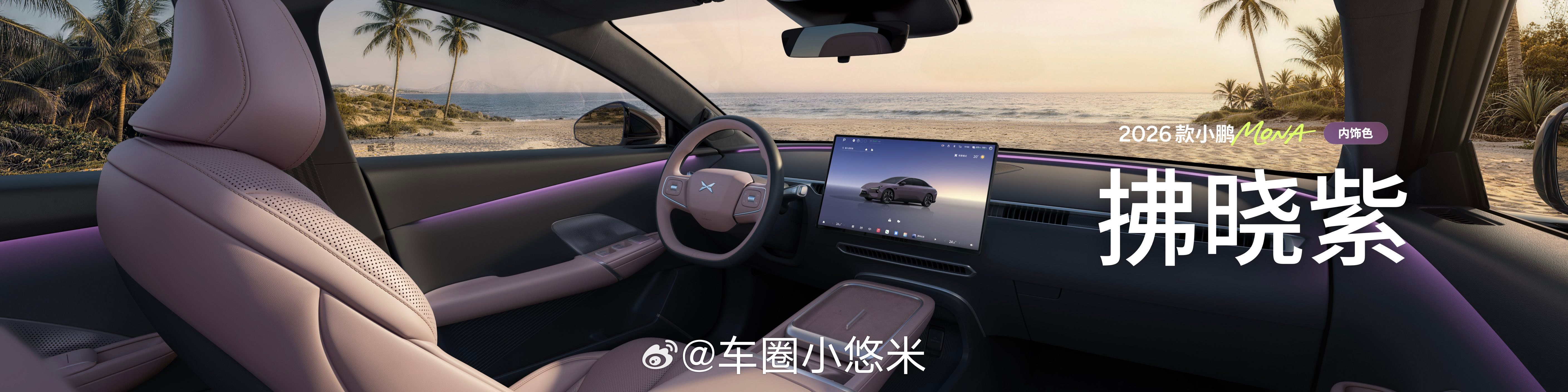 2026款小鹏MONA M03精致感达到Next Level,座舱内饰全面升级。新款小鹏MONA为年轻用户提供三款内饰色任选,拂晓紫、晨雾灰、夜幕灰,适配年轻人多元审美;超70%内饰软包覆盖,仿麂皮顶棚+手机置物台升级,触手可及皆是细腻质感;扬声器网罩全金属蚀刻工艺、中控台&门板开关UV触感漆,配件工艺全面对标豪华级;全新升级超20万级「大沙发」,更大、更软、更舒适,让舒适与精致伴随每一次出行。2026款小鹏MONA今日上市2026款小鹏MONA大大大大大升级