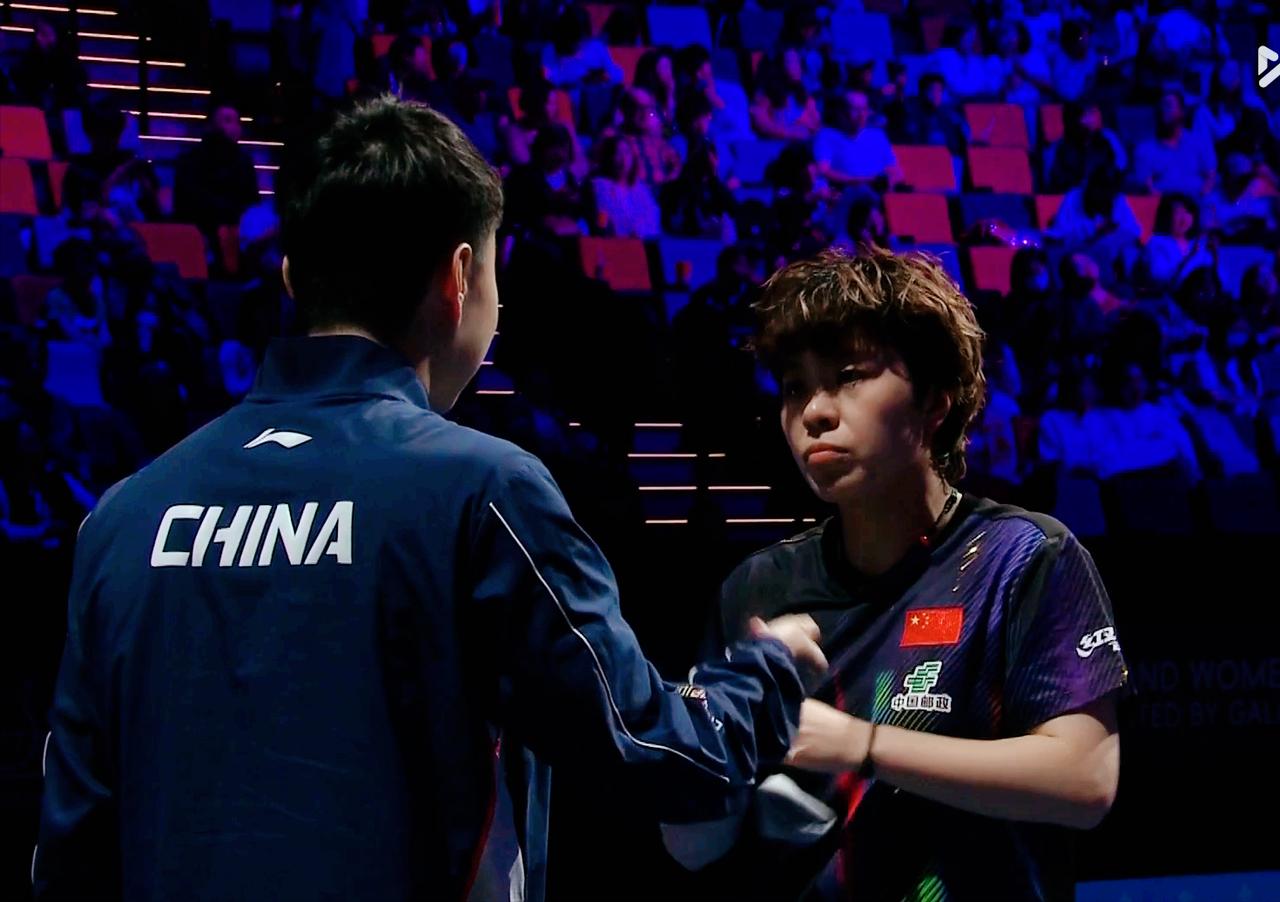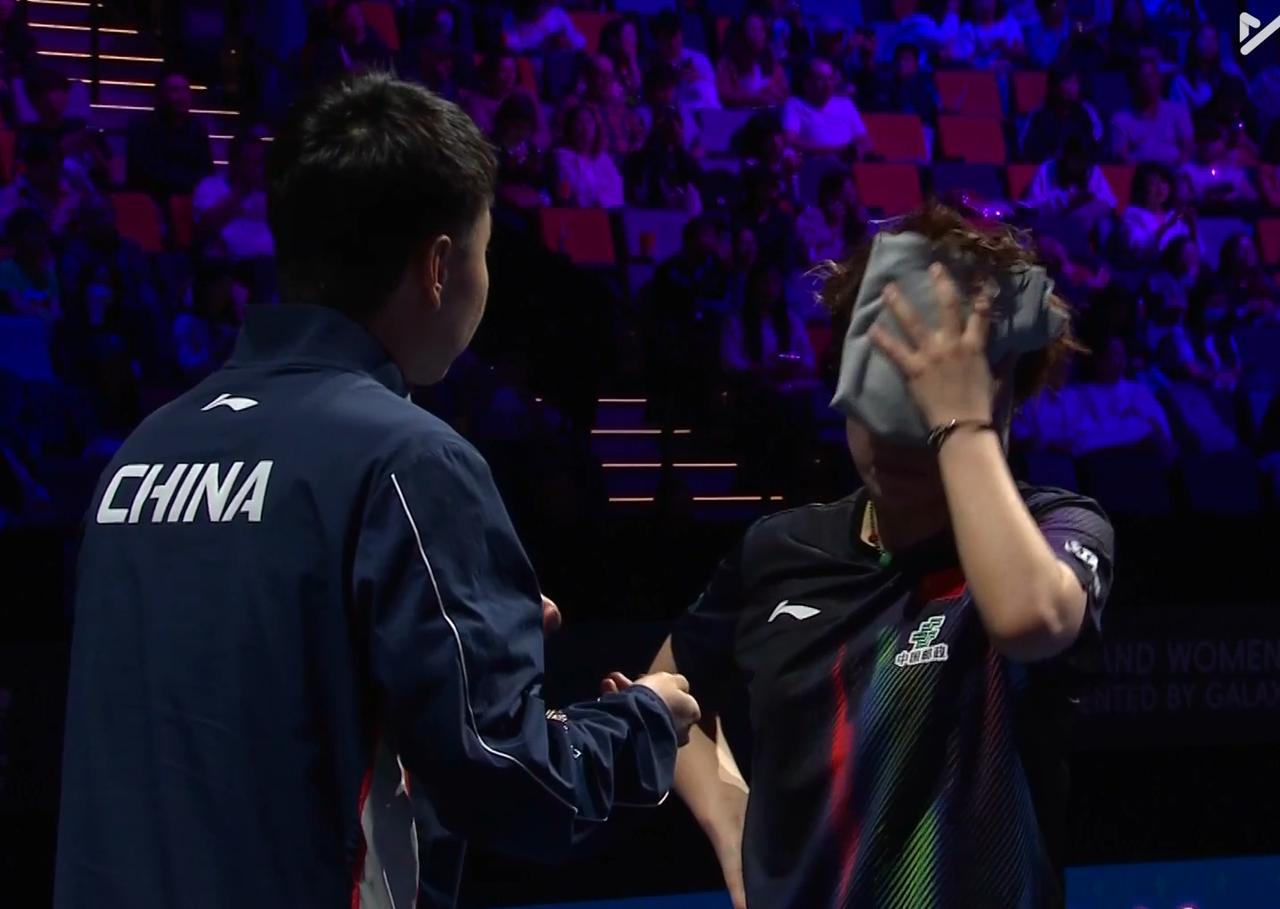 我去!于子洋指导王艺迪,被全程收音了。 咱们一点秘密也藏不住了。 第一局 两人打到3:3后, 大迪连赢6球, 9:3领先, 最后11:7拿下。 局间于子洋说: 张本美和反手速度快, 你加点旋转, 让她打, 她打几个就虚了。 但是要注意她的正手变直线!