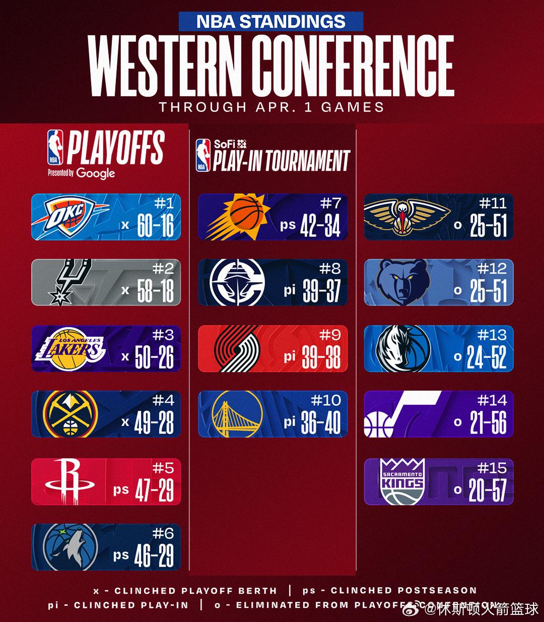 火箭今日战胜雄鹿后,拿下4连胜超越森林狼上升至西部第五!!根据目前的排名,火箭季