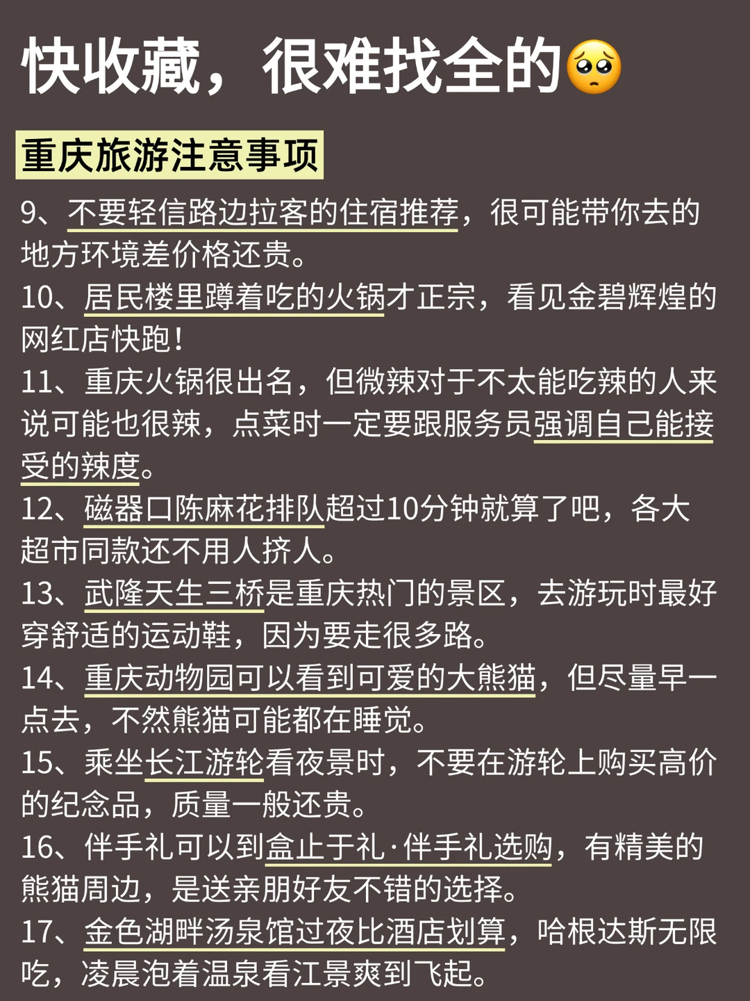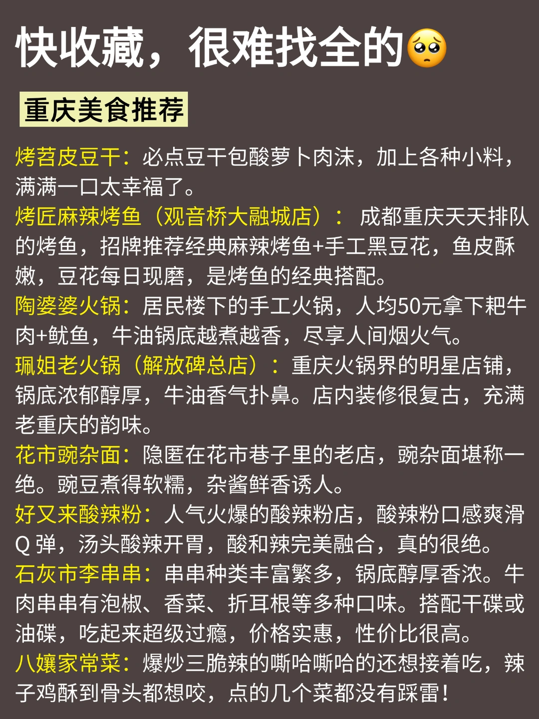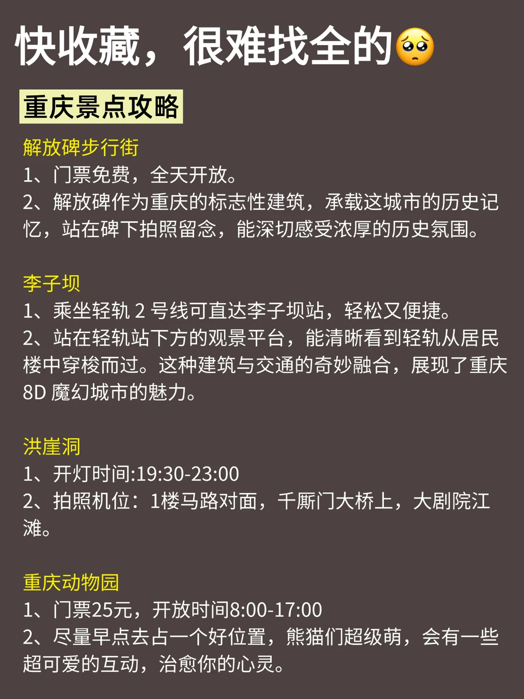 3-5月的重庆,超适合游玩,但有些坑要注意⚠️ 本重庆土著人用心整理了一份出游指南🗺️ 别让一些小问题影响自己的好心情🍀 希望每个宝子都能收获属于自己的重庆记忆🌸 ㅤ 去了无数次的店铺分享💗 ✅花市豌杂面 ✅好又来酸辣粉 ✅石灰市李串串 ✅烤匠麻辣烤鱼(观音桥大融城店) ✅珮姐老火锅(解放碑总店) ✅盒止于礼·伴手礼,熊猫小礼品很适合送人哦! ㅤ 趁着春光,准备好行囊,快来重庆开启属于你的浪漫之旅吧🚄 ㅤ