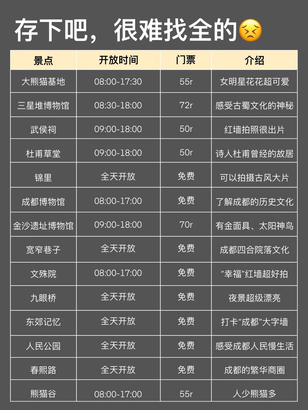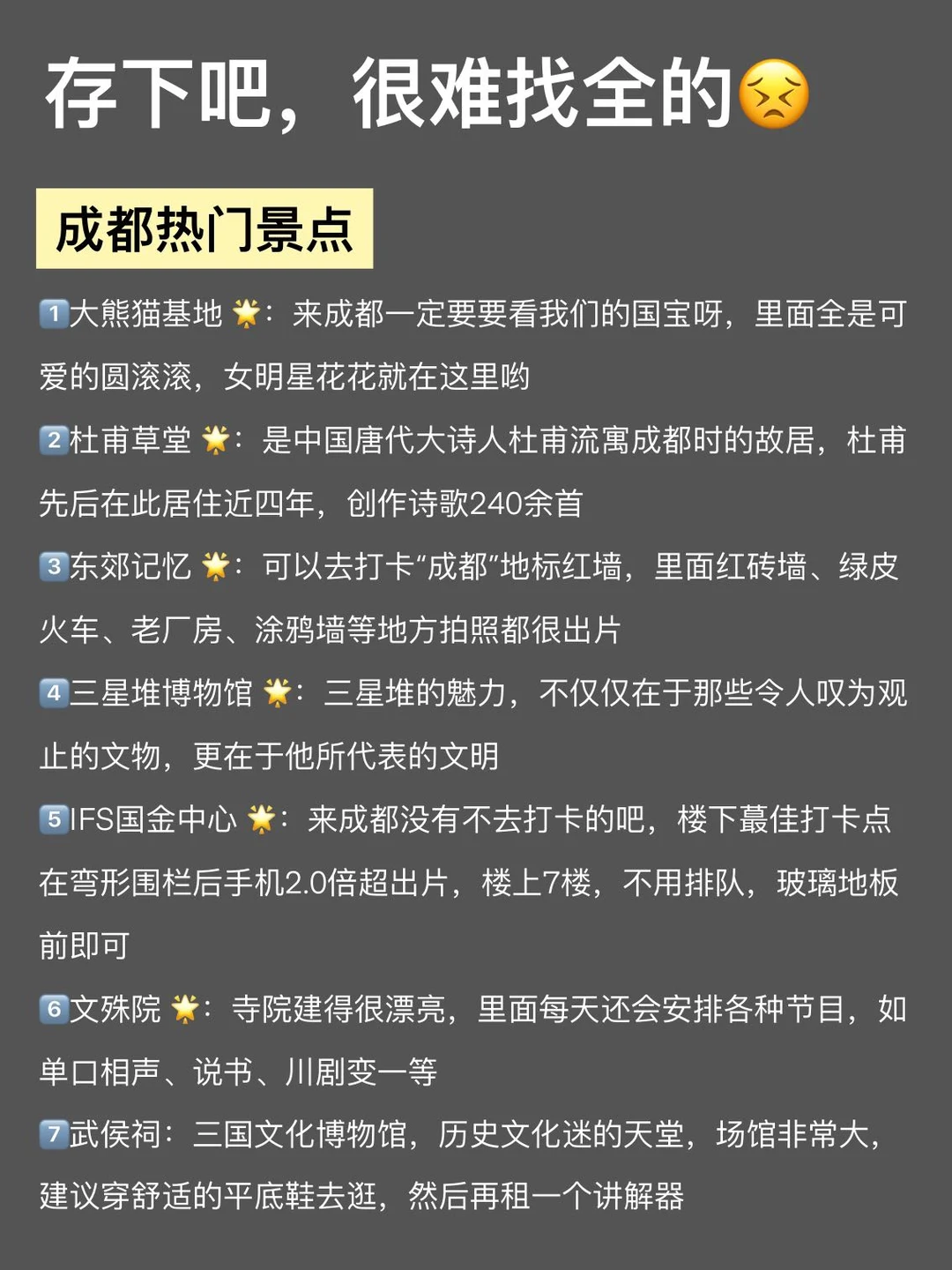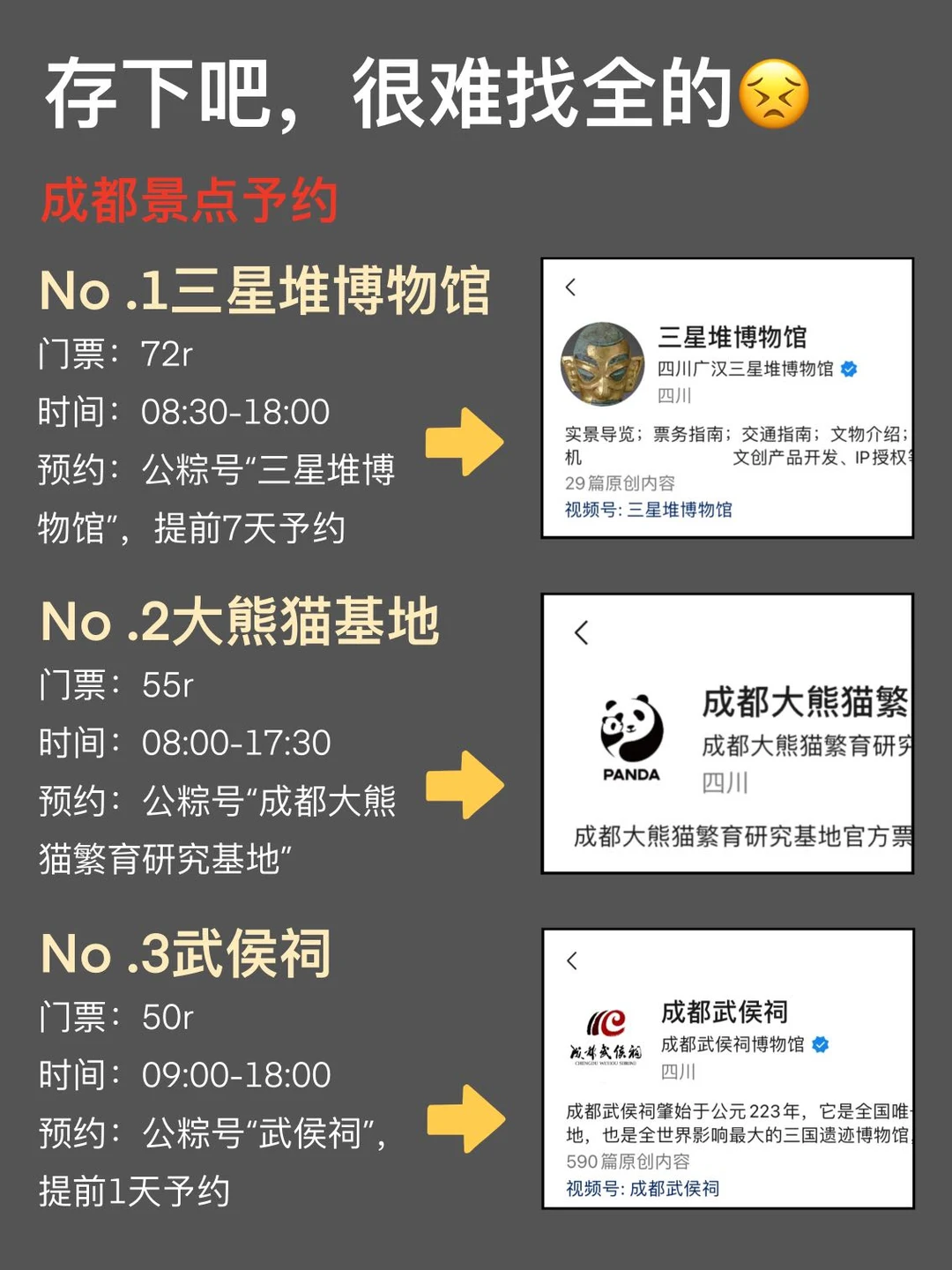 熬夜整理出了成都旅游出行攻略,希望姐妹们来成都之前一定要提前做好规划!把所有可以予约的景点提前约好,不然来了也是白来