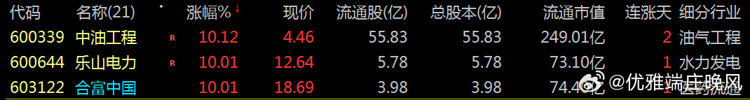 600339 中油工程600644 乐山电力603122 合富中国