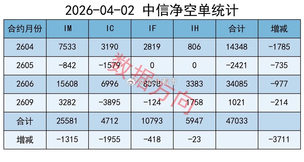 四大品种全部减空,分别对IH、IF减空154手、495手,分别对IC、IM减空1335手、478手;